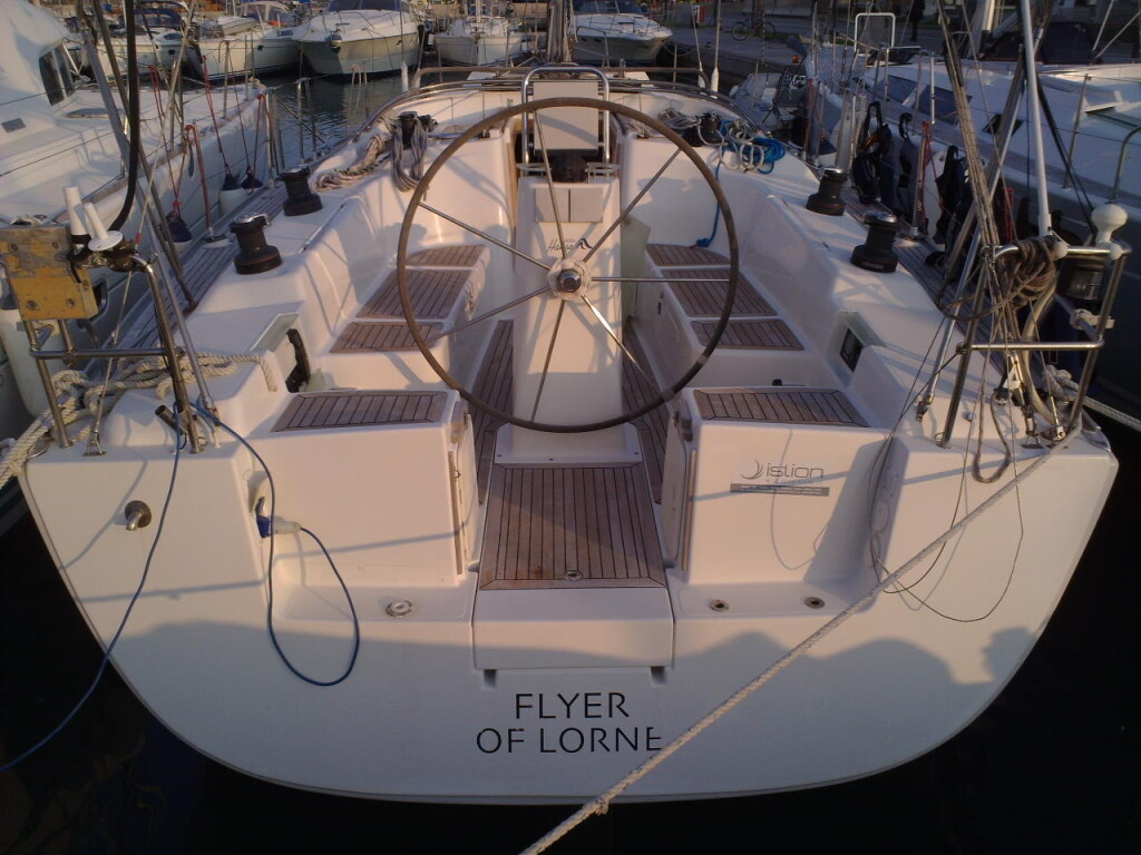 Sailing yacht Hanse 400 Flyer Of Lorne, built in 2006 is anchored in the Kos, Kos Marina, Greece - Dodecanese, Greece. It has 3 cabins, can accommodate 6 people and has 2 toilets. Bed linen and kitchen equipment are included in the price.