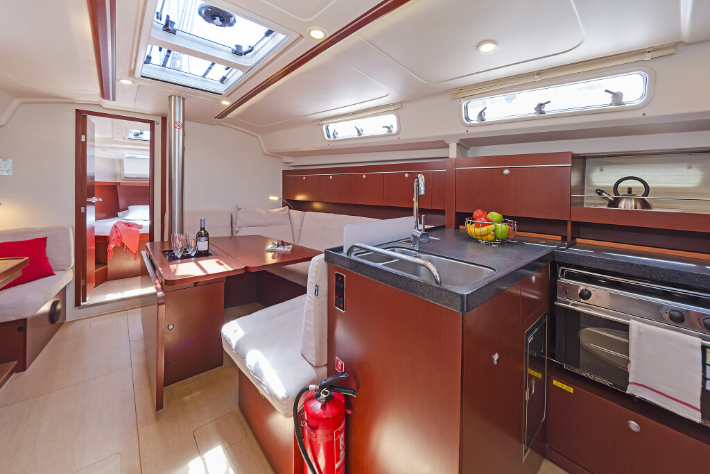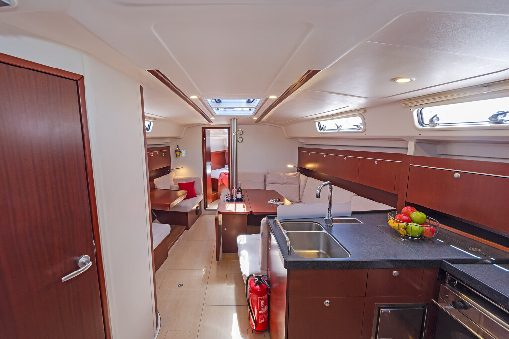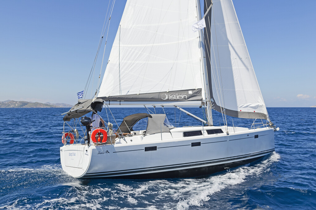 Sailing yacht Hanse 415 Deep Blue, built in 2014 is anchored in the Lavrion, main port, Greece - Peloponnese, Greece. It has 3 cabins, can accommodate 6 + 2 people and has 2 toilets. Bed linen and kitchen equipment are included in the price.