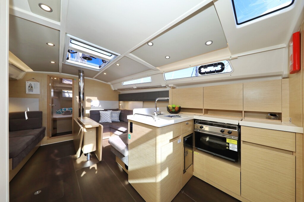 Sailing yacht Hanse 418 Alexander, built in 2021 is anchored in the Marina Kastela, Croatia - Split, Croatia. It has 3 cabins, can accommodate 6 + 2 people and has 2 toilets. Bed linen and kitchen equipment are included in the price.
