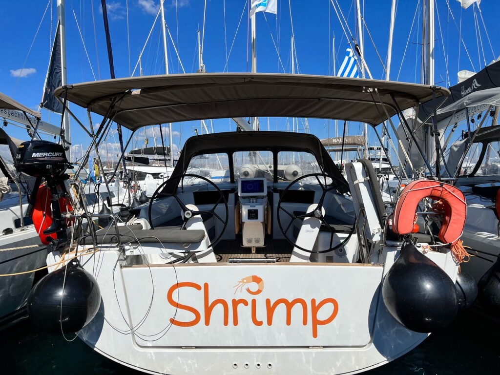 Sailing yacht Hanse 418 Shrimp, built in 2020 is anchored in the Lavrion - Olympic Marine, Greece - Peloponnese, Greece. It has 3 cabins, can accommodate 6 + 2 people and has 2 toilets. Bed linen and kitchen equipment are included in the price.