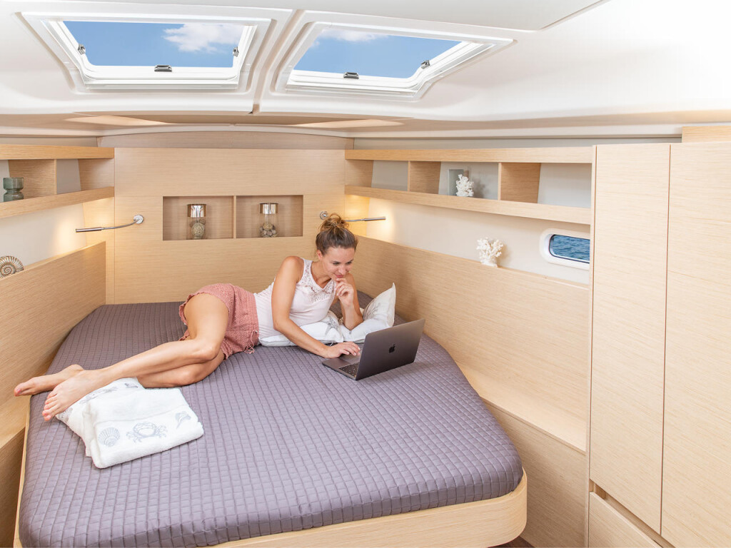 The Hanse 458 is particularly popular due to its special equipment such as Heating, Teak cockpit, Autopilot, Inverter, Bow thruster, Bathing platform, Composite steering wheels, Electric toilet. If you have any questions, our team will be happy to answer them personally!