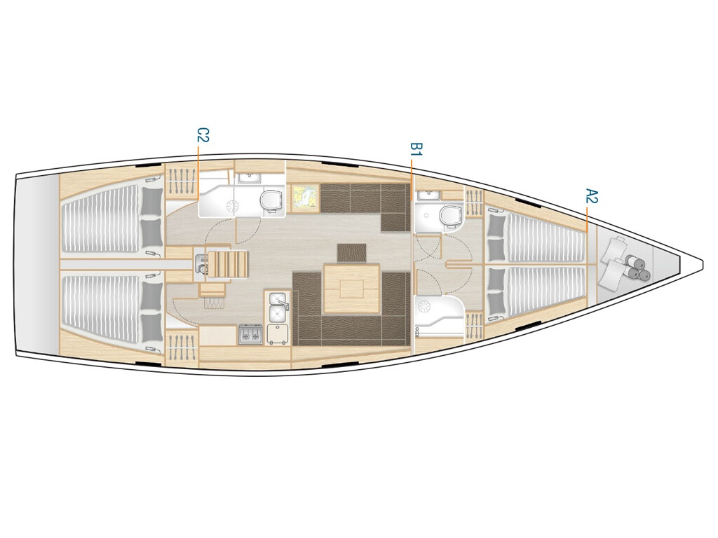 The Hanse 458 is particularly popular due to its special equipment such as Bow thruster, Cockpit cushions, Inverter, Autopilot, Teak cockpit, Solar panels. If you have any questions, our team will be happy to answer them personally!
