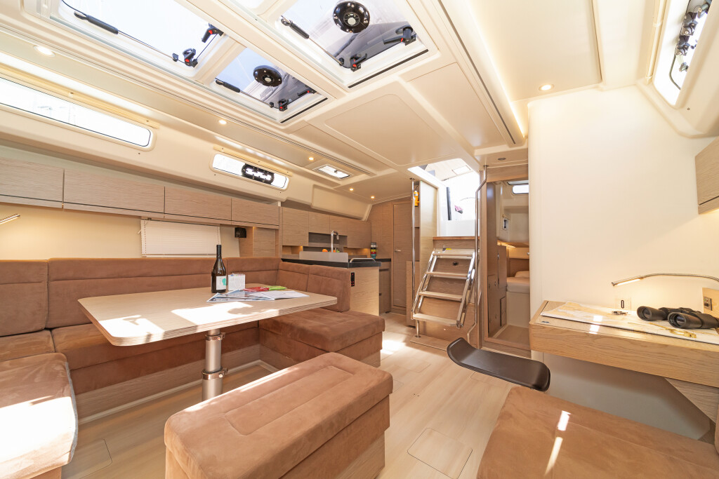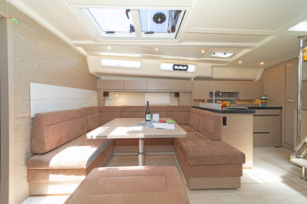 Sailing yacht Hanse 458 Triton, built in 2019 is anchored in the Rhodes New Marina, Greece - Dodecanese, Greece. It has 4 cabins, can accommodate 8 + 2 people and has 2 toilets. Bed linen and kitchen equipment are included in the price.