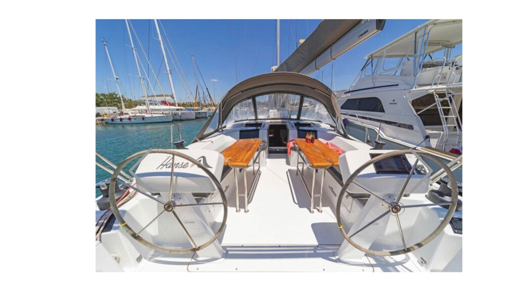 Sailing yacht Hanse 508 Big Blue, built in 2020 is anchored in the Athens, Alimos marina, Greece - Peloponnese, Greece. It has 5 + 1 cabins, can accommodate 10 + 2 people and has 3 + 1 toilets. Bed linen and kitchen equipment are included in the price.