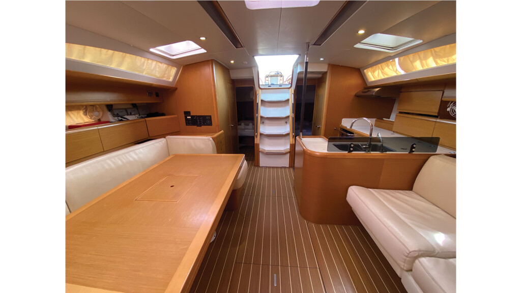 Sailing yacht Jeanneau 53 Christianna 12, built in 2011 is anchored in the Athens, Alimos marina, Greece - Peloponnese, Greece. It has 5 + 1 cabins, can accommodate 10 people and has 4 toilets. Bed linen and kitchen equipment are included in the price.