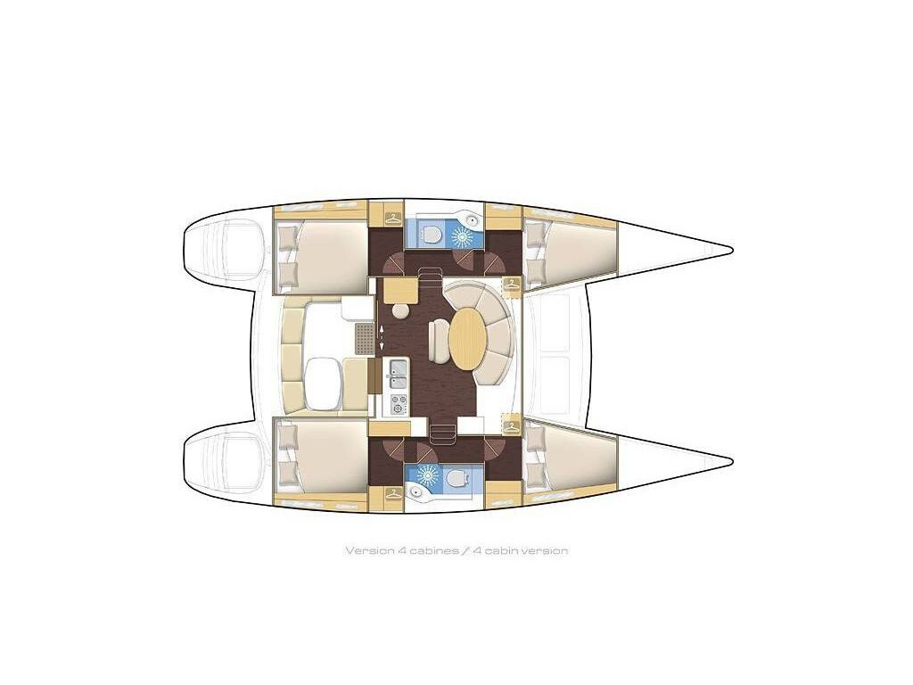 Catamaran Lagoon 380 Aride, built in 2018 is anchored in the Seychelles, Mahe, Seychelles - Mahe, Seychelles. It has 4 + 2 cabins, can accommodate 8 + 2 people and has 2 toilets. Bed linen and kitchen equipment are included in the price.
