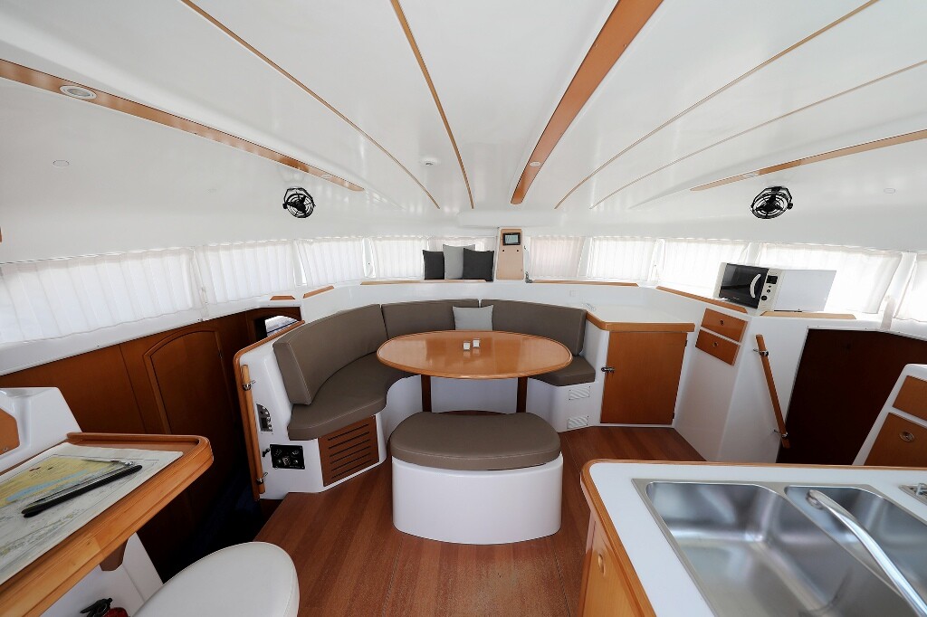 The Lagoon 380 S2 is particularly popular due to its special equipment such as Cockpit cushions, Electric toilet, Autopilot, GPS chart plotter, Generator, Air Conditioning, Heating, Life jackets, W-LAN GRATIS, Microwave. If you have any questions, our team will be happy to answer them personally!