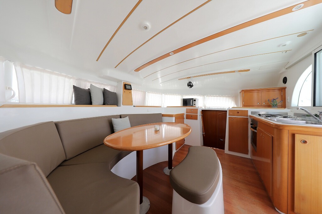 Catamaran Lagoon 380 S2 Love Song, built in 2006 is anchored in the Marina Šangulin, Biograd, Croatia - Zadar, Croatia. It has 4 + 2 cabins, can accommodate 8 + 2 + 2 people and has 2 toilets. Bed linen and kitchen equipment are included in the price.