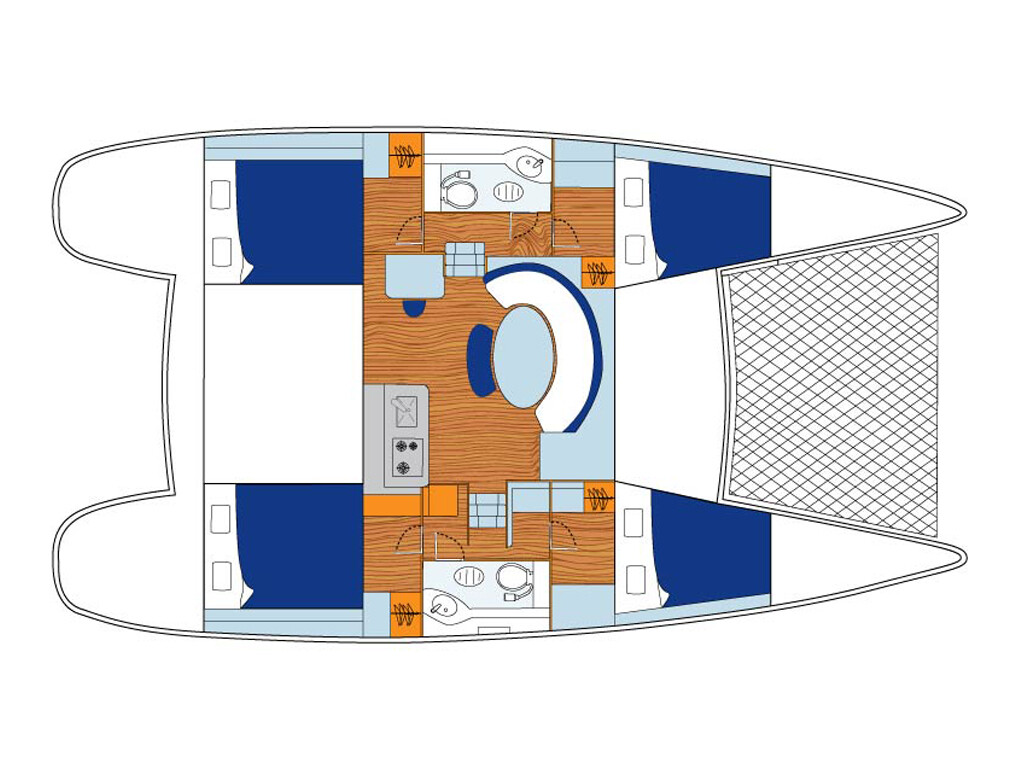 Catamaran Lagoon 380 S2 Thalassaki, built in 2014 is anchored in the Athens, Alimos marina, Greece - Peloponnese, Greece. It has 4 cabins, can accommodate 8 + 2 people and has 2 toilets. Bed linen and kitchen equipment are included in the price.