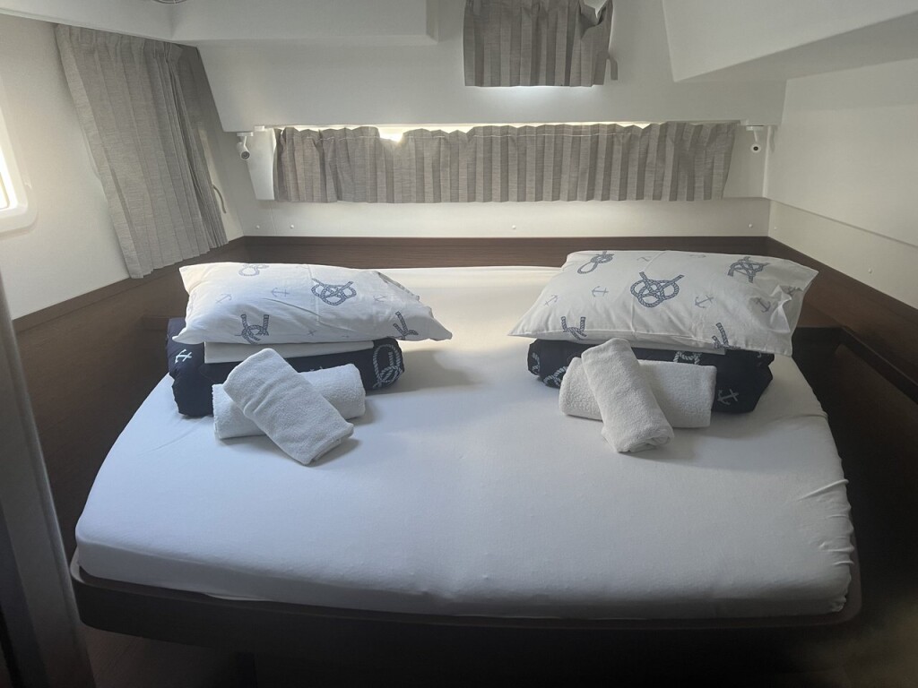 Catamaran Lagoon 42 Adventure, built in 2022 is anchored in the ACI Marina Split, Croatia - Split, Croatia. It has 4 + 2 cabins, can accommodate 8 + 2 + 2 people and has 4 toilets. Bed linen and kitchen equipment are included in the price.