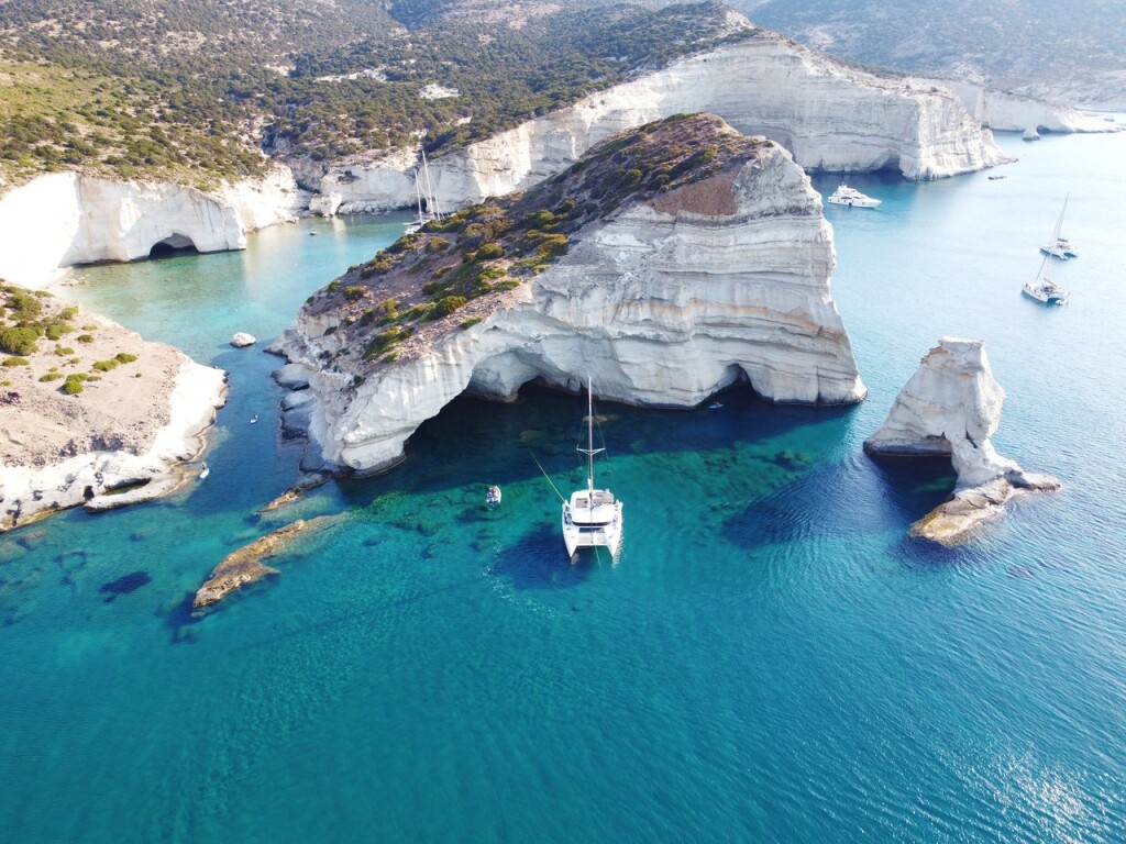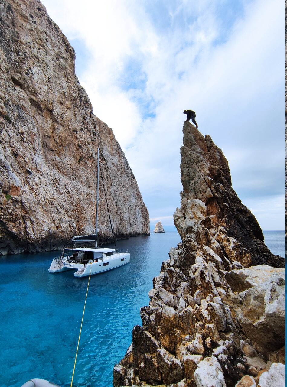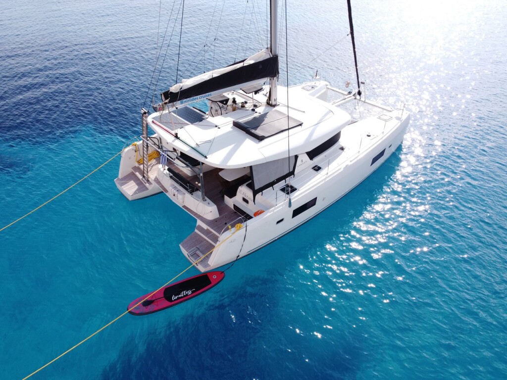 Catamaran Lagoon 42 Aktaia, built in 2020 is anchored in the Mykonos, Greece - Cyclades, Greece. It has 4 + 2 cabins, can accommodate 8 + 2 people and has 4 + 1 toilets. Bed linen and kitchen equipment are included in the price.