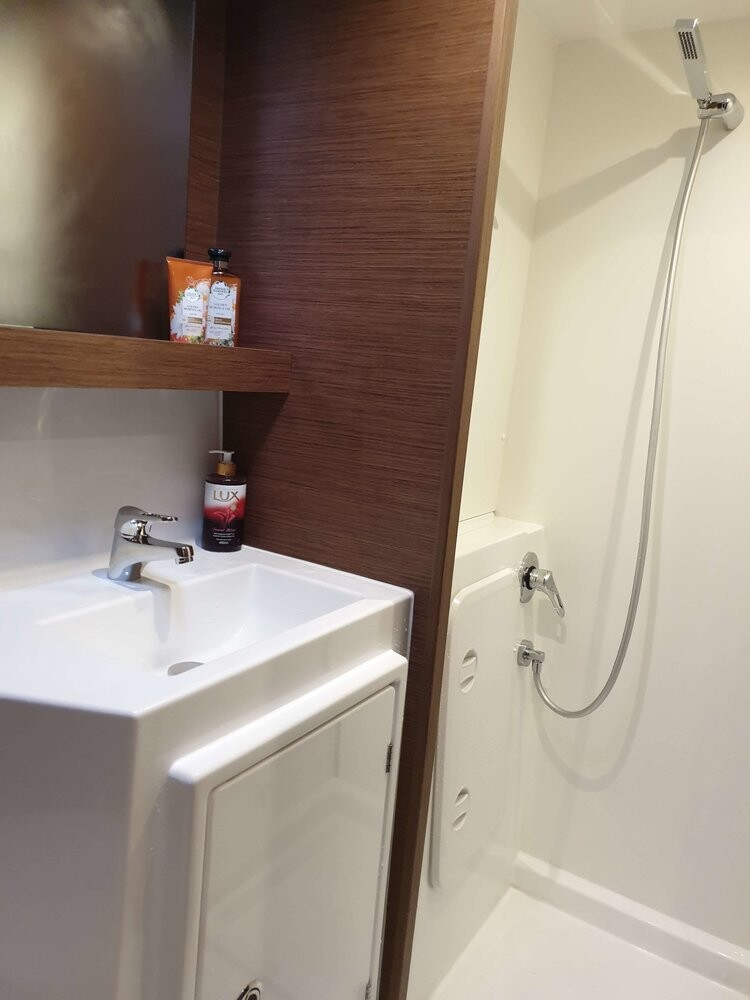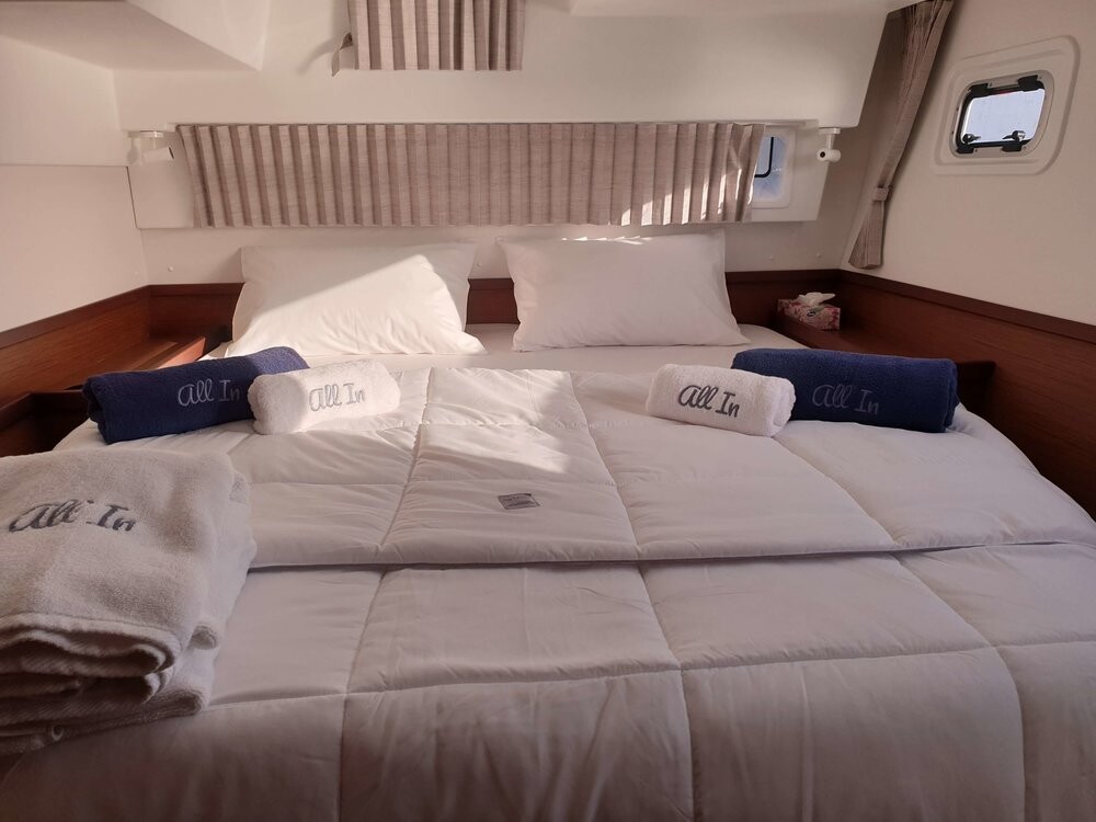 Catamaran Lagoon 42 All In, built in 2020 is anchored in the Lavrion - Olympic Marine, Greece - Peloponnese, Greece. It has 4 + 2 cabins, can accommodate 8 + 2 people and has 4 toilets. Bed linen and kitchen equipment are included in the price.