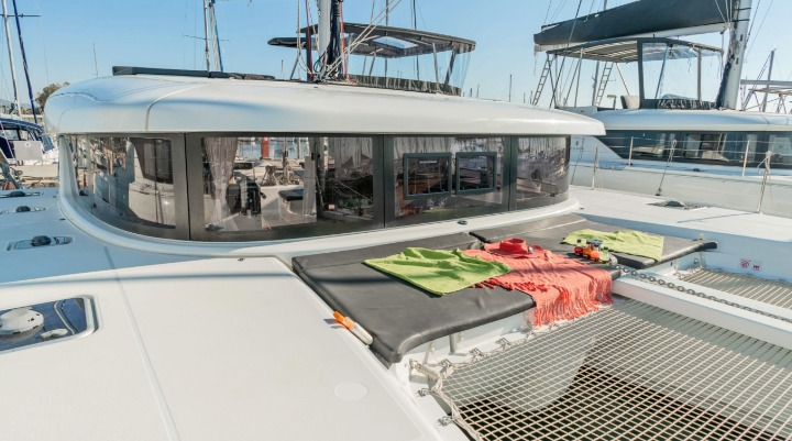 Catamaran Lagoon 42 Amici, built in 2020 is anchored in the Athens, Alimos marina, Greece - Peloponnese, Greece. It has 6 cabins, can accommodate 10 + 2 people and has 4 toilets. Bed linen and kitchen equipment are included in the price.