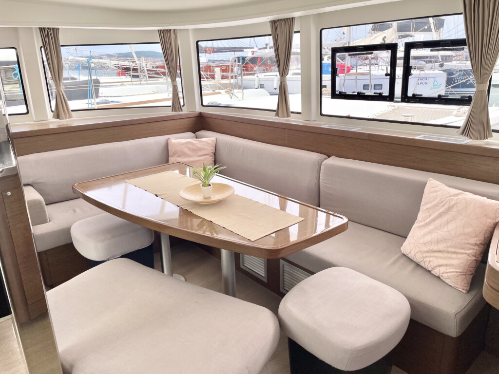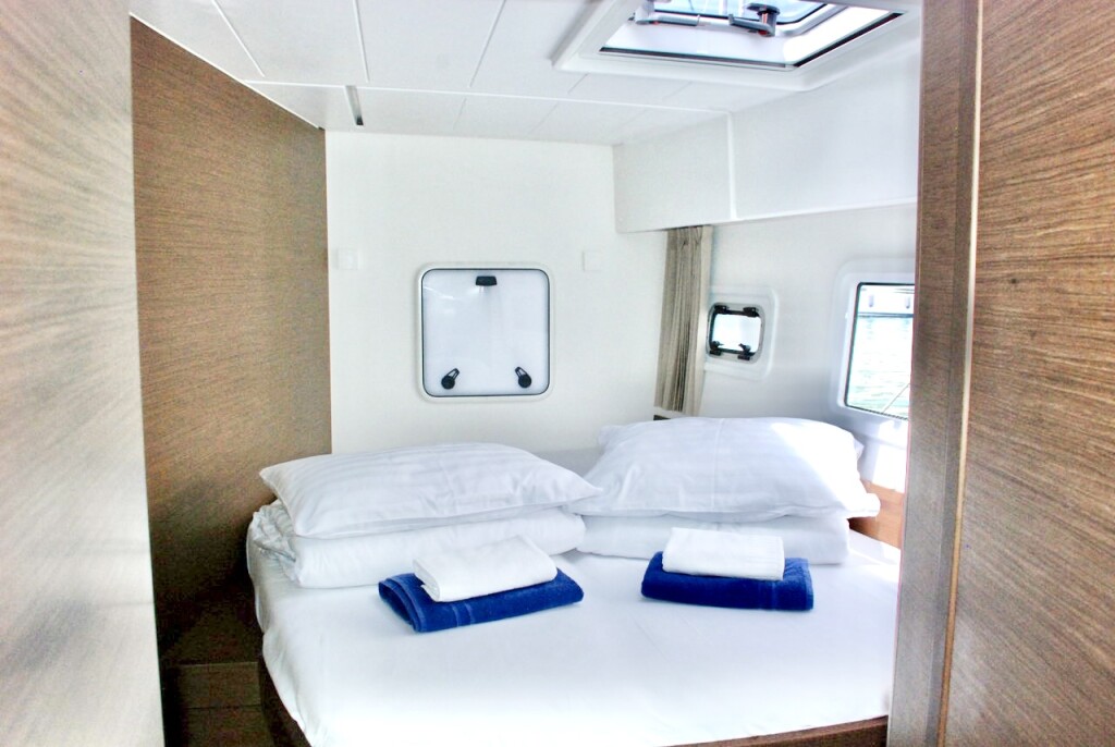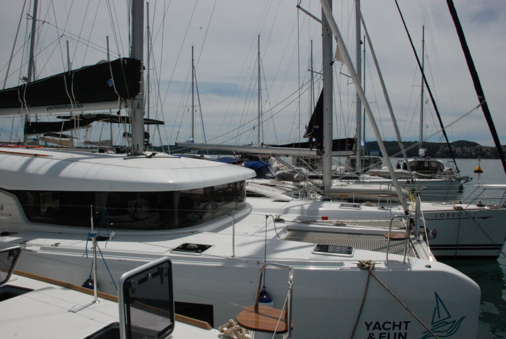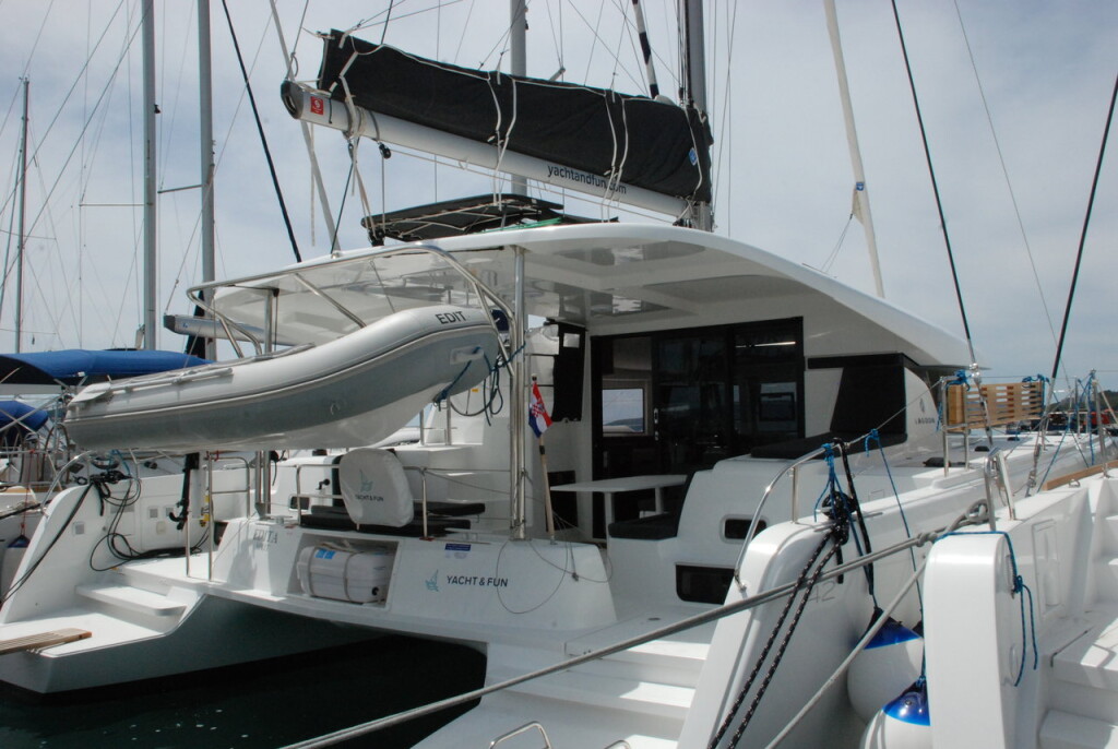Catamaran Lagoon 42 Edita, built in 2018 is anchored in the Trogir, Yachtclub Seget (Marina Baotić), Croatia - Split, Croatia. It has 4 + 2 cabins, can accommodate 8 + 2 + 2 people and has 4 toilets. Bed linen and kitchen equipment are included in the price.