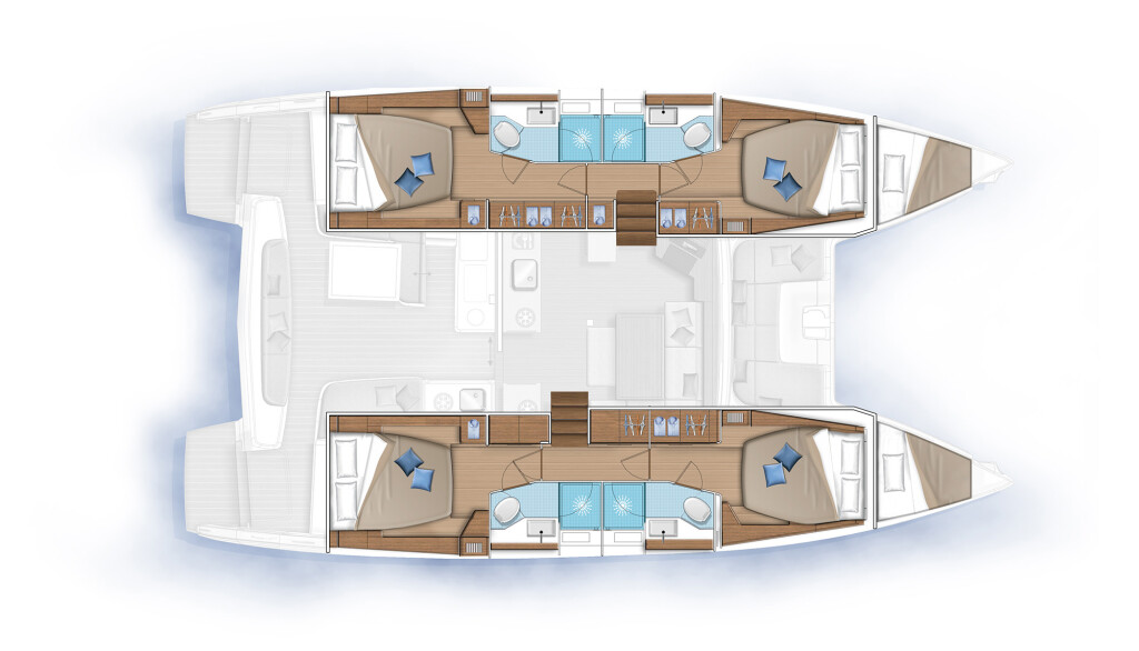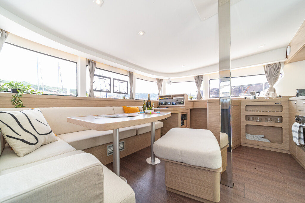 Catamaran Lagoon 42 First Adventure, built in 2024 is anchored in the ACI Marina Skradin, Croatia - Sibenik, Croatia. It has 4 + 2 cabins, can accommodate 8 + 2 people and has 4 + 1 toilets. Bed linen and kitchen equipment are included in the price.