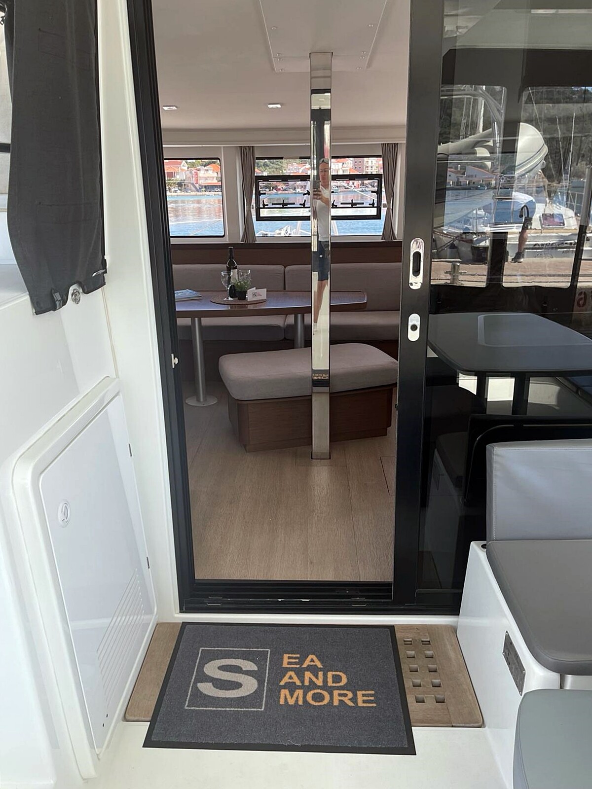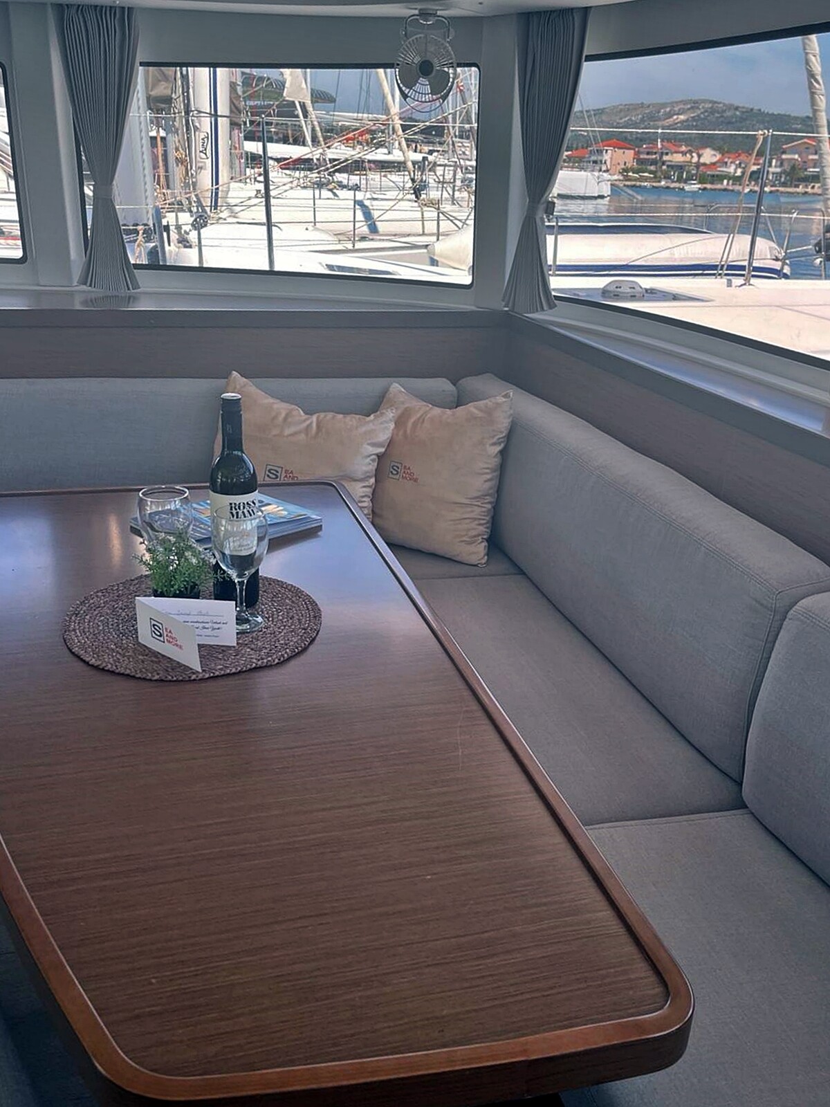 Catamaran Lagoon 42 Futuna Lima, built in 2021 is anchored in the Marina Frapa, Rogoznica, Croatia - Sibenik, Croatia. It has 4 + 2 cabins, can accommodate 8 + 2 + 2 people and has 4 toilets. Bed linen and kitchen equipment are included in the price.