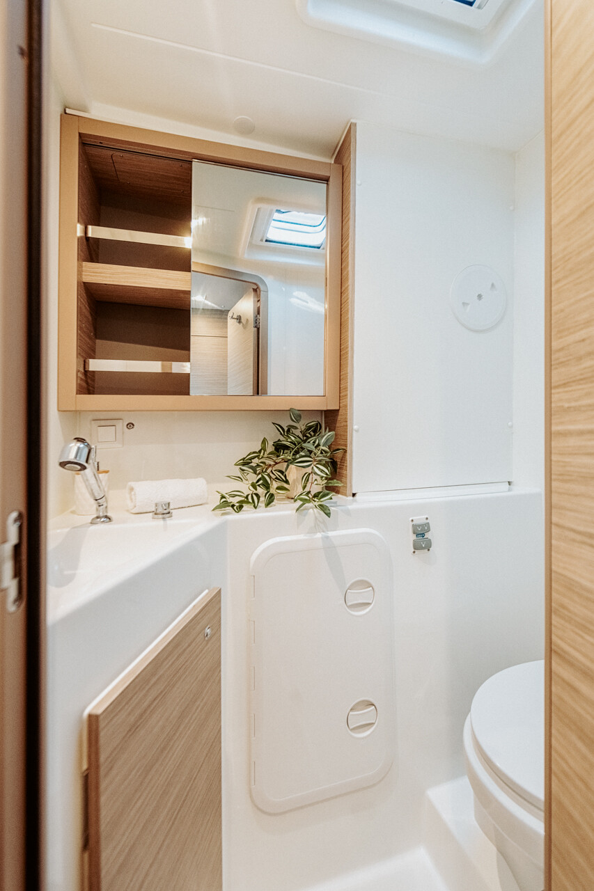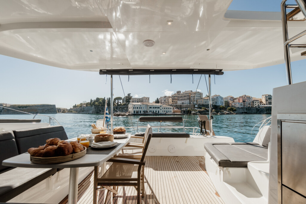 Catamaran Lagoon 42 IO, built in 2023 is anchored in the Corfu, Gouvia Marina, Greece - Ionian Islands, Greece. It has 4 + 2 cabins, can accommodate 8 + 2 + 2 people and has 4 + 1 toilets. Bed linen and kitchen equipment are included in the price.