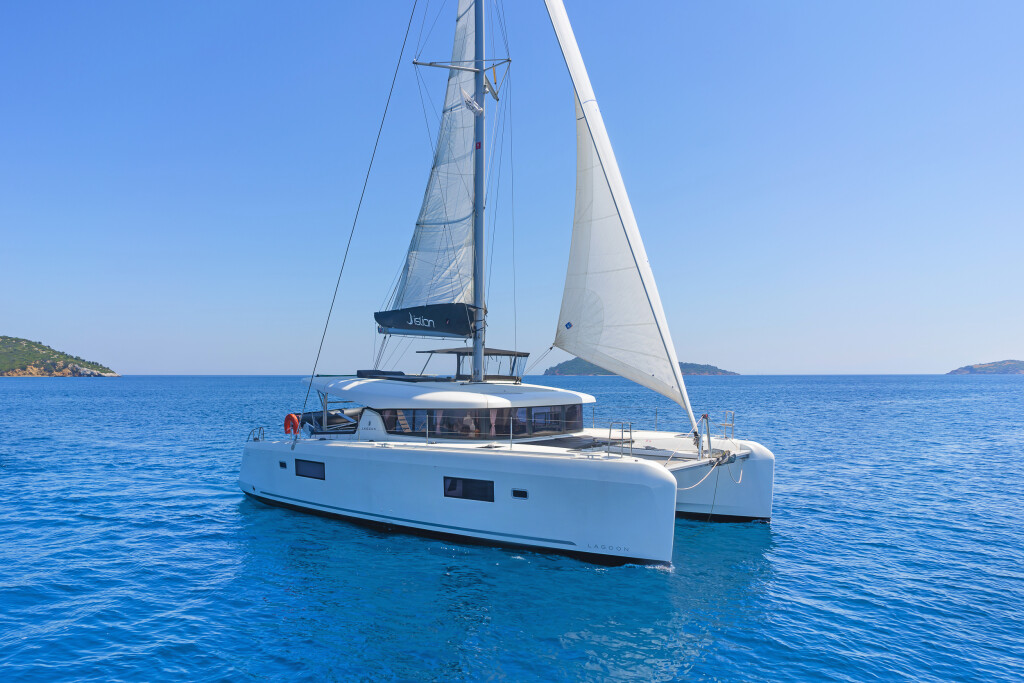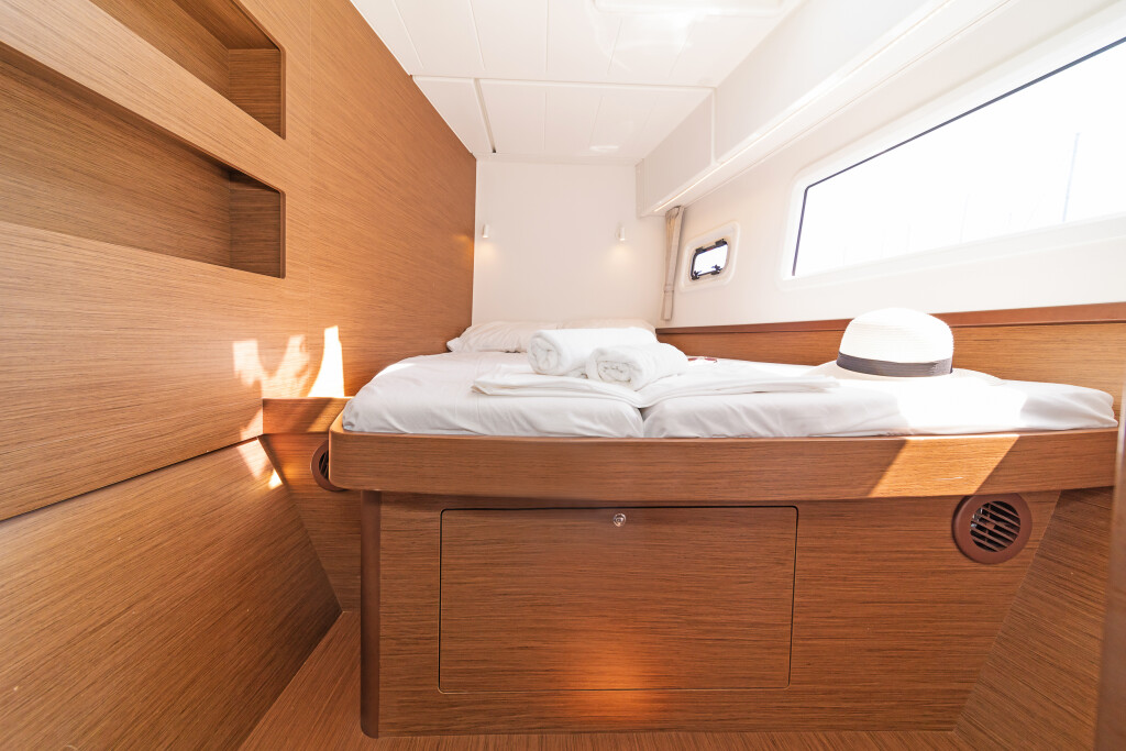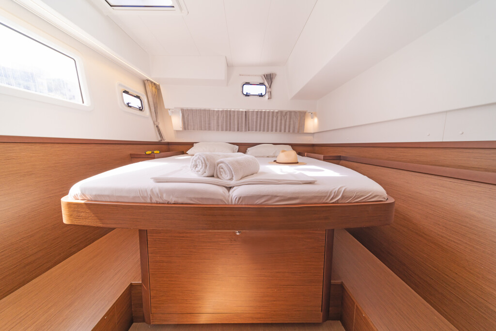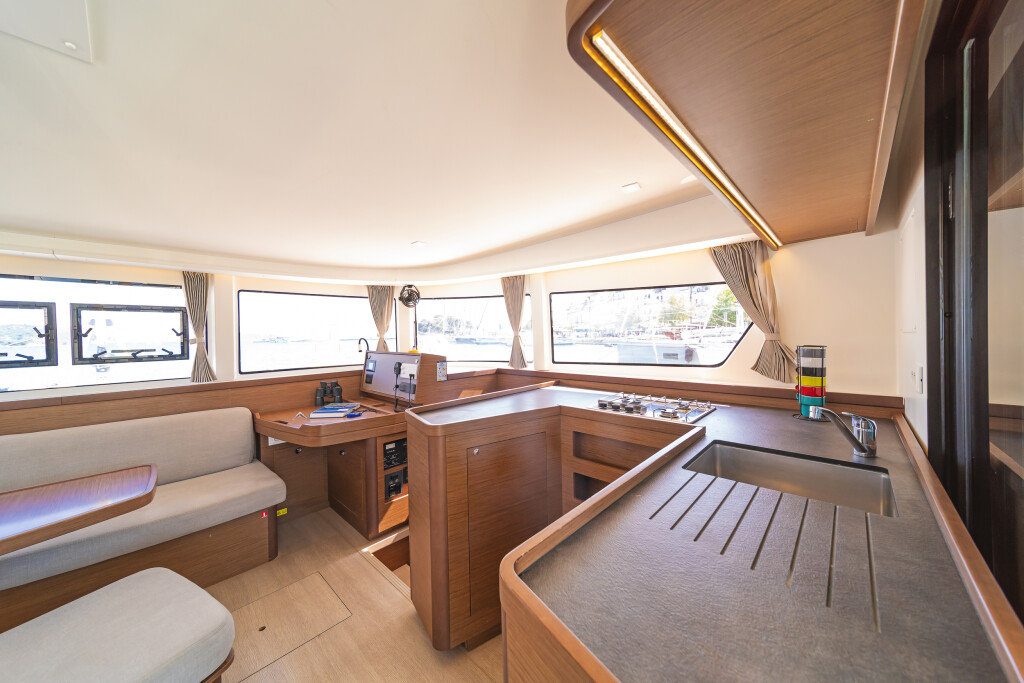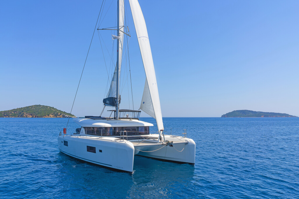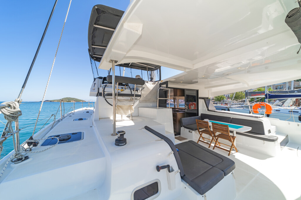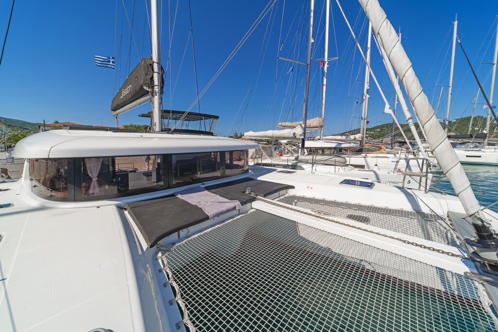 Catamaran Lagoon 42 Marou, built in 2020 is anchored in the Lefkas, D-Marin, Greece - Ionian Islands, Greece. It has 4 + 2 cabins, can accommodate 8 + 2 people and has 4 + 1 toilets. Bed linen and kitchen equipment are included in the price.