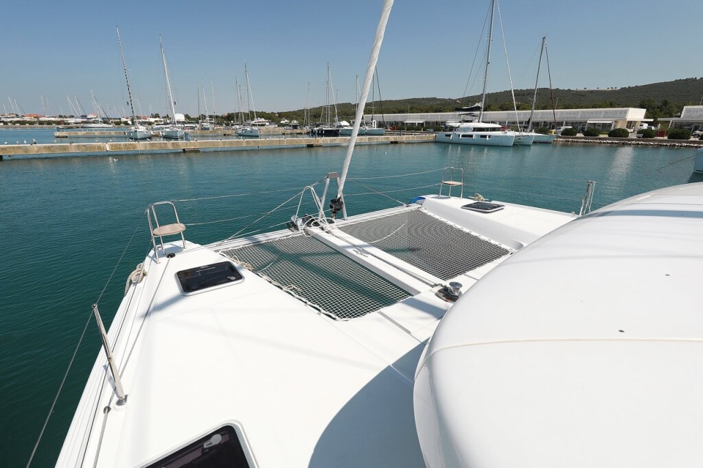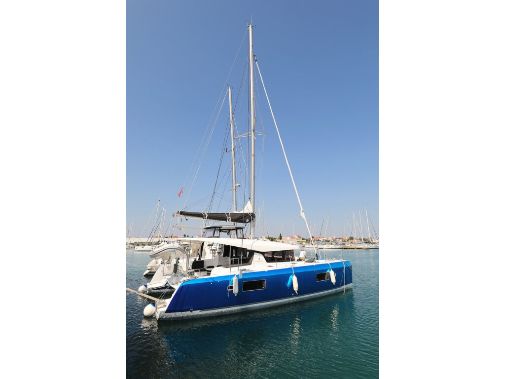 Catamaran Lagoon 42 Royal Salute, built in 2019 is anchored in the Sukosan, D-Marin Dalmacija Marina, Croatia - Zadar, Croatia. It has 4 + 2 cabins, can accommodate 8 + 2 + 2 people and has 4 toilets. Bed linen and kitchen equipment are included in the price.
