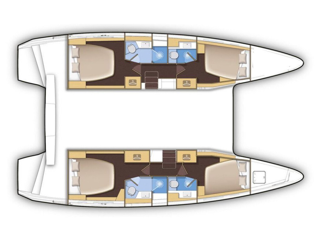 Catamaran Lagoon 42 SIRENA, built in 2022 is anchored in the Trogir, Yachtclub Seget (Marina Baotić), Croatia - Split, Croatia. It has 4 + 1 cabins, can accommodate 8 + 1 people and has 4 toilets. Bed linen and kitchen equipment are included in the price.