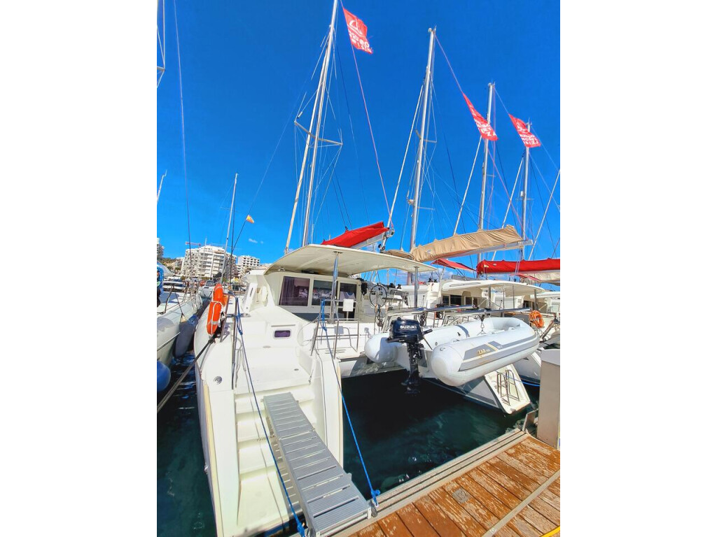 Catamaran Lagoon 421 The Mob, built in 2015 is anchored in the Ibiza, Club Nàutic Sant Antoni de Portmany, Spain - Balearic Islands, Spain. It has 4 + 2 cabins, can accommodate 8 + 2 + 2 people and has 4 toilets. Bed linen and kitchen equipment are included in the price.
