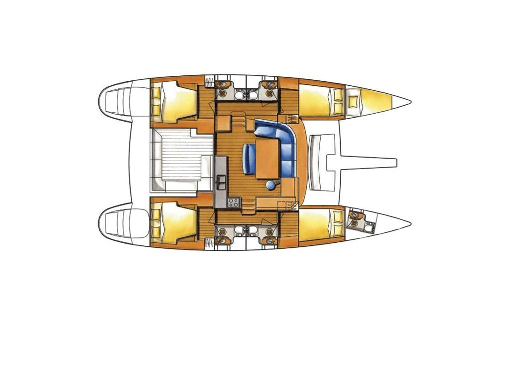 Catamaran Lagoon 440 Enjala, built in 2010 is anchored in the Marina di San Vincenzo Toscana, Italy - Tuscany, Italy. It has 5 cabins, can accommodate 8 + 2 + 1 people and has 5 toilets. Bed linen and kitchen equipment are included in the price.