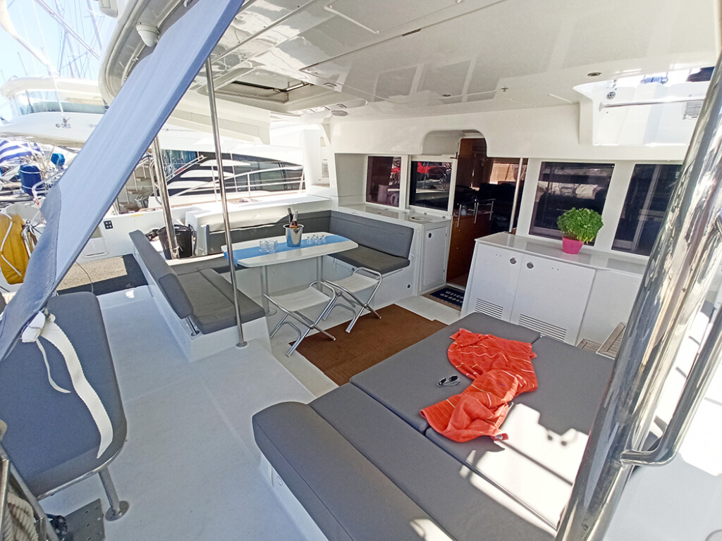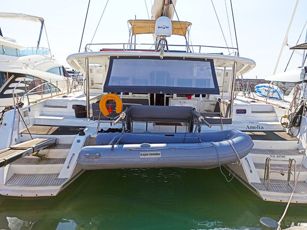 Catamaran Lagoon 450 Amelia, built in 2012 is anchored in the Athens, Alimos marina, Greece - Peloponnese, Greece. It has 4 + 2 cabins, can accommodate 8 + 2 people and has 4 + 2 toilets. Bed linen and kitchen equipment are included in the price.