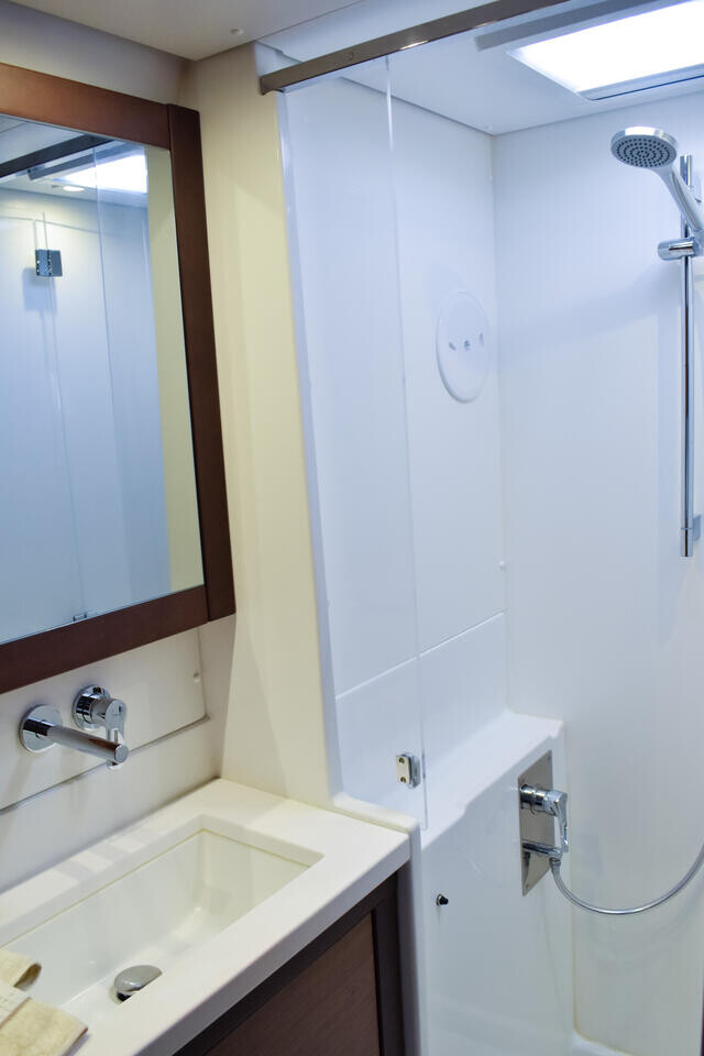 The Lagoon 450 F is particularly popular due to its special equipment such as Solar panels, Inverter, Air Conditioning, Coffee machine, GPS chart plotter, Generator, TV, Electric toilet. If you have any questions, our team will be happy to answer them personally!