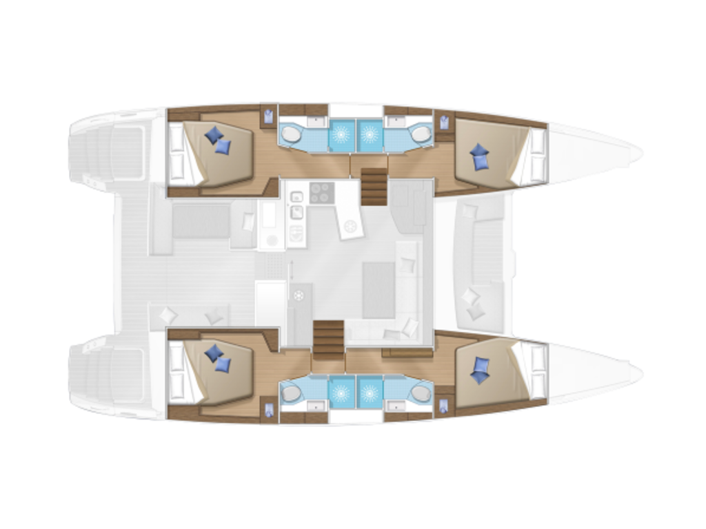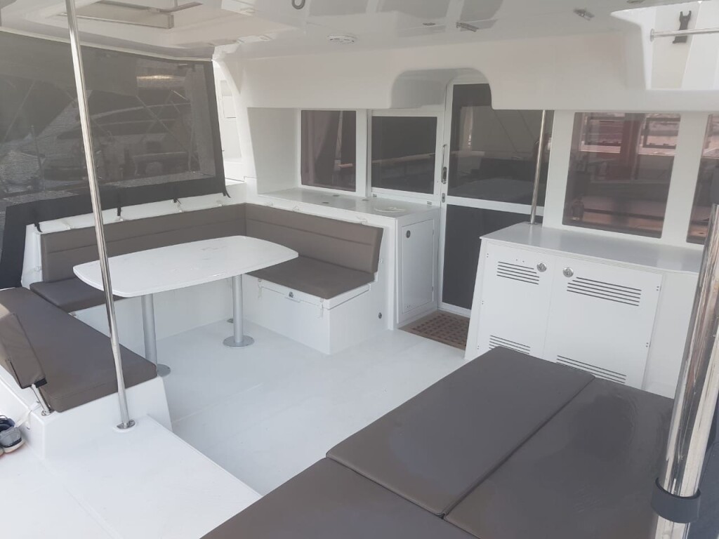 Catamaran Lagoon 450 F Fo's, built in 2020 is anchored in the Mykonos, Greece - Cyclades, Greece. It has 4 + 2 cabins, can accommodate 11 + 1 people and has 4 + 1 toilets. Bed linen and kitchen equipment are included in the price.