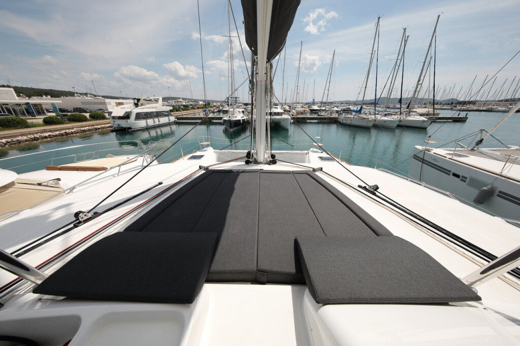 Catamaran Lagoon 450 F Paradise, built in 2018 is anchored in the Sukosan, D-Marin Dalmacija Marina, Croatia - Zadar, Croatia. It has 4 + 2 cabins, can accommodate 8 + 2 + 2 people and has 4 toilets. Bed linen and kitchen equipment are included in the price.