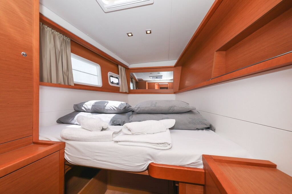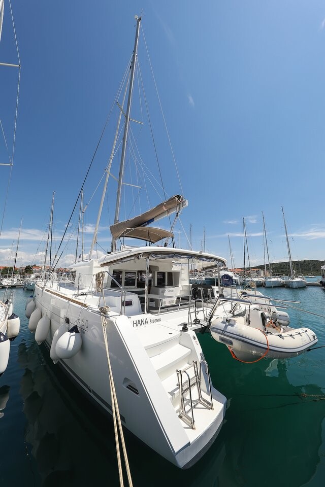 Catamaran Lagoon 450 Fortuna, built in 2014 is anchored in the Marina Pirovac, Croatia - Sibenik, Croatia. It has 4 + 2 cabins, can accommodate 8 + 2 + 2 people and has 4 toilets. Bed linen and kitchen equipment are included in the price.