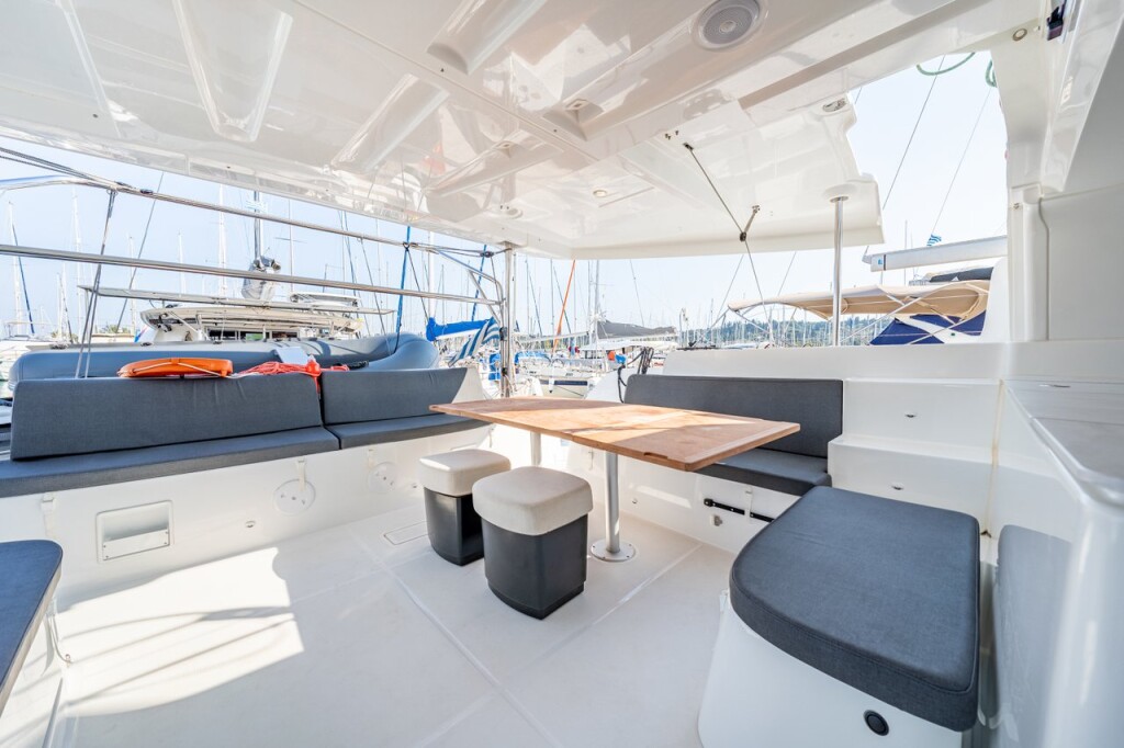 Catamaran Lagoon 46 Enjoy, built in 2024 is anchored in the Corfu, Gouvia Marina, Greece - Ionian Islands, Greece. It has 4 + 1 cabins, can accommodate 8 + 2 + 2 people and has 4 + 1 toilets. Bed linen and kitchen equipment are included in the price.