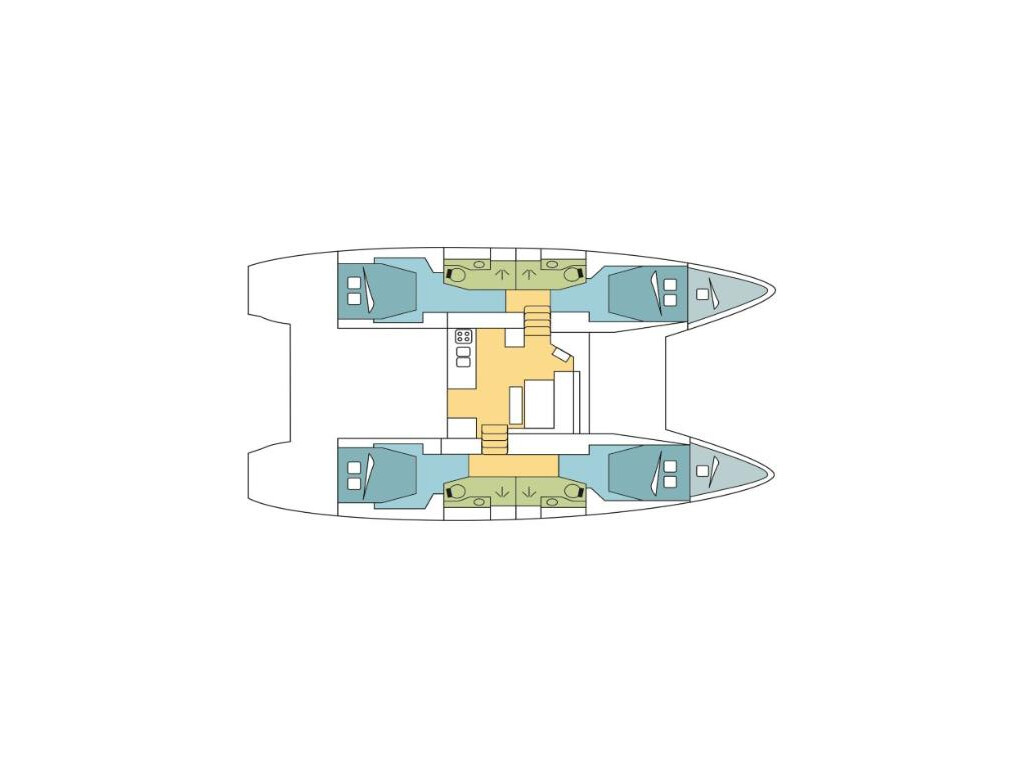 Catamaran Lagoon 46 GIANT TREVALLY, built in 2025 is anchored in the Naples, Pozzuoli, Italy - Campania, Italy. It has 4 + 2 cabins, can accommodate 8 + 2 + 2 people and has 4 toilets. Bed linen and kitchen equipment are included in the price.