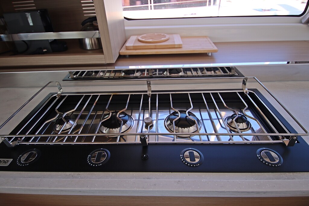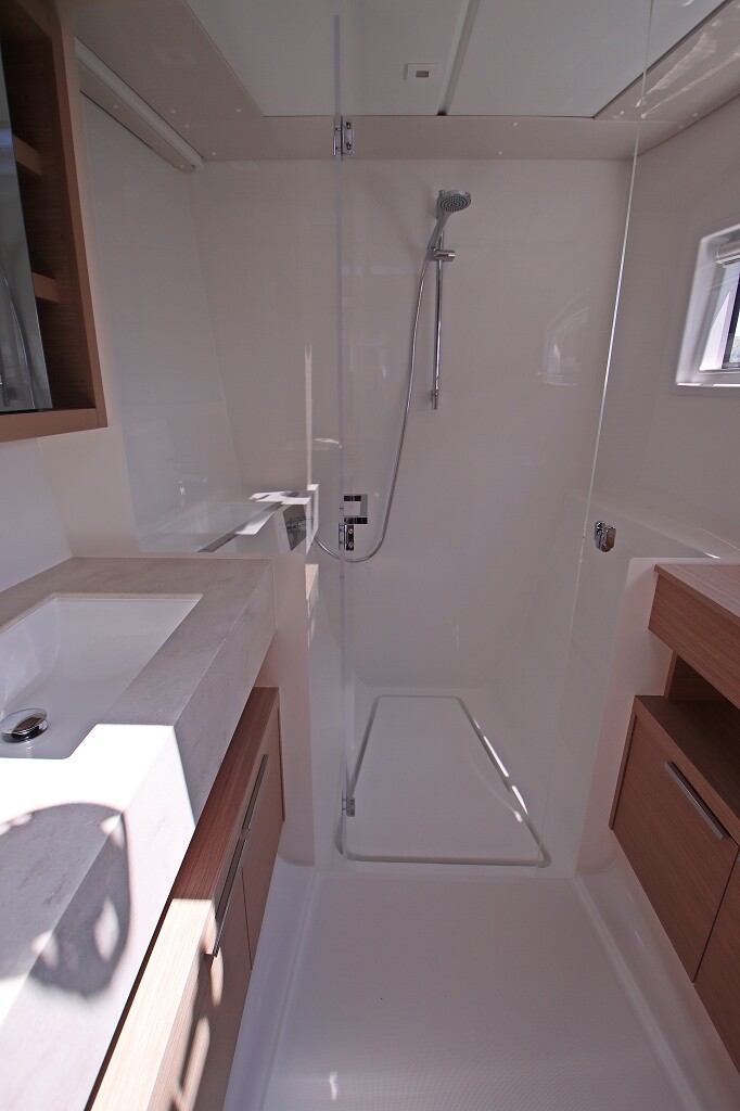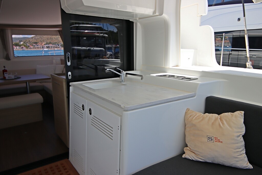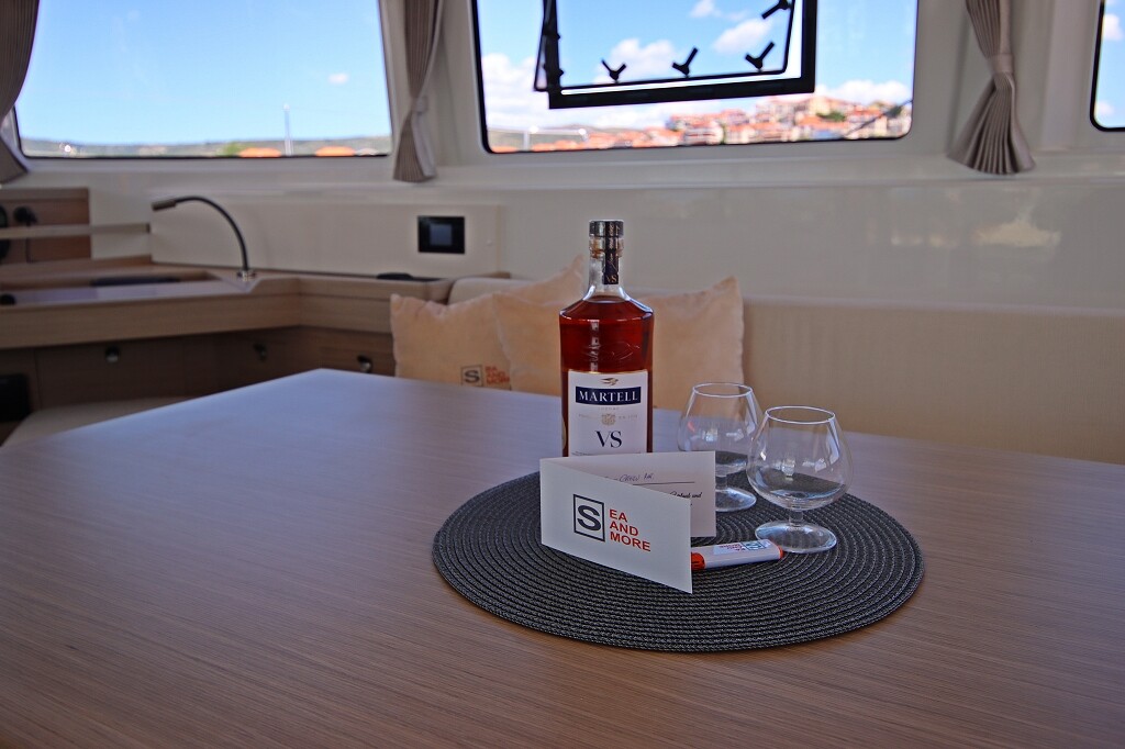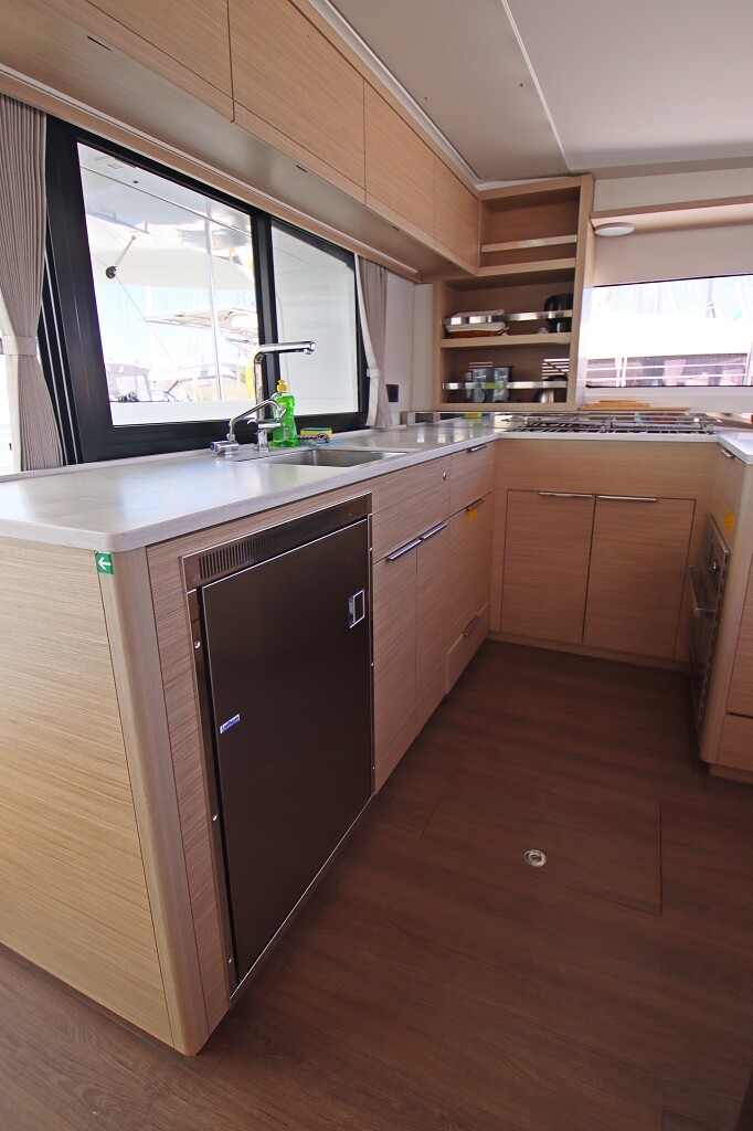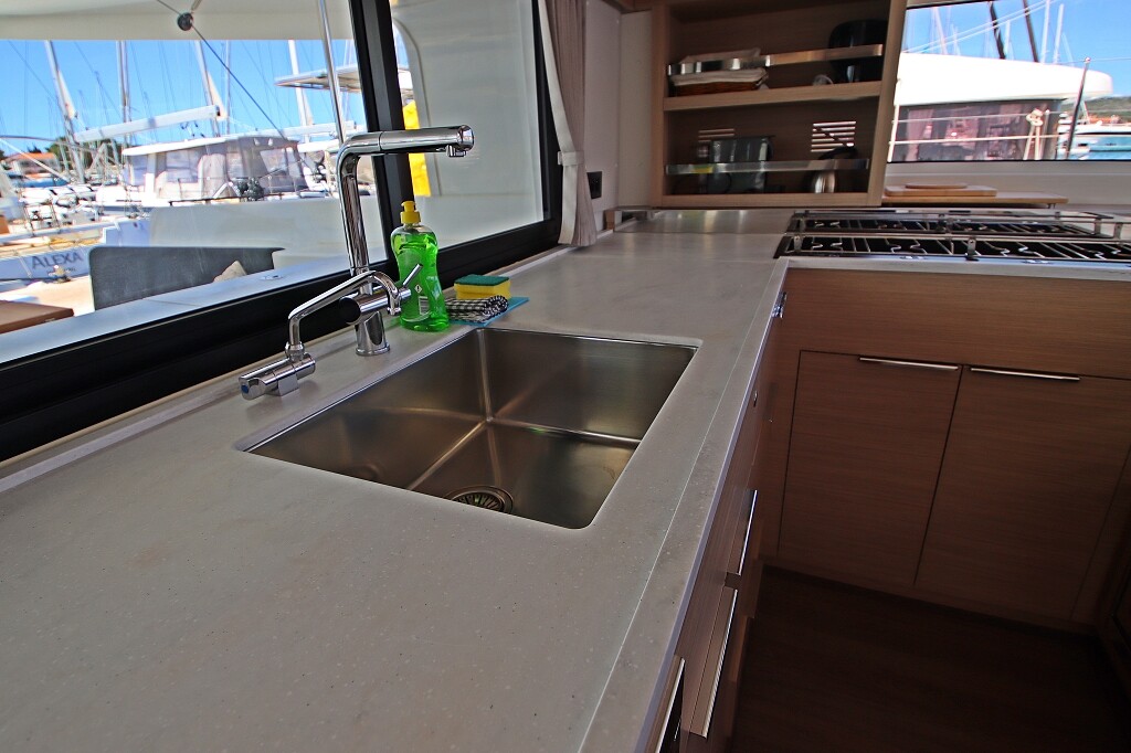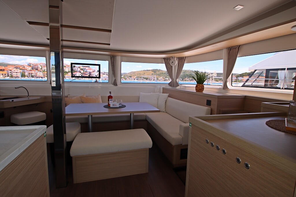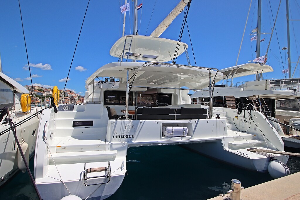 Catamaran Lagoon 46 OW Chill Out, built in 2024 is anchored in the Marina Frapa, Rogoznica, Croatia - Sibenik, Croatia. It has 3 + 2 cabins, can accommodate 6 + 2 people and has 3 toilets. Bed linen and kitchen equipment are included in the price.