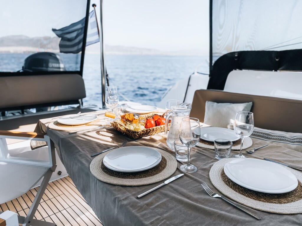 Catamaran Lagoon 46 Sea Energy I, built in 2021 is anchored in the Athens, Alimos marina, Greece - Peloponnese, Greece. It has 4 + 1 cabins, can accommodate 8 + 2 + 1 people and has 4 + 1 toilets. Bed linen and kitchen equipment are included in the price.