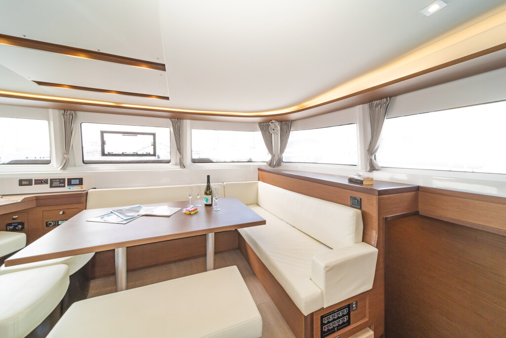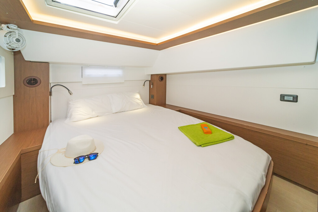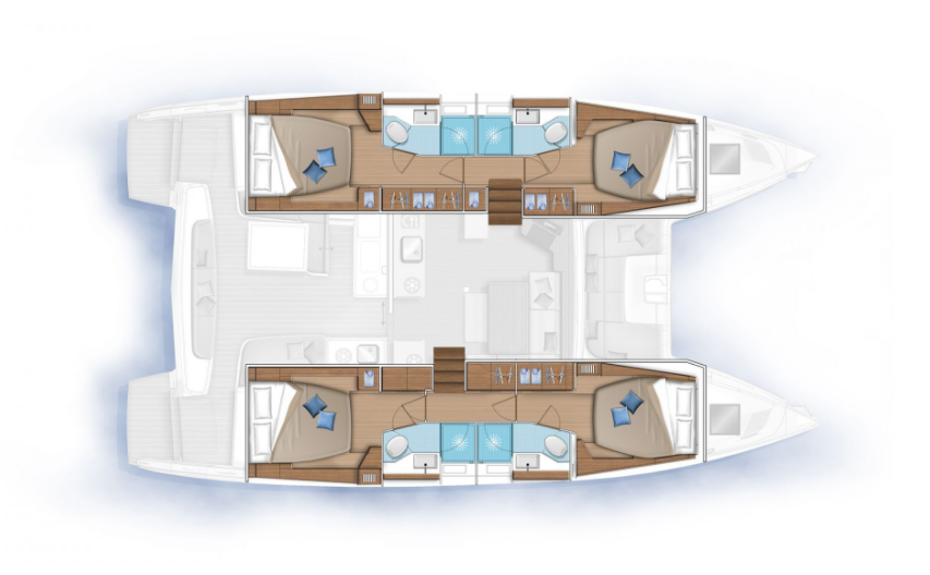 Catamaran Lagoon 46 Vasiliki, built in 2022 is anchored in the Athens, Alimos marina, Greece - Peloponnese, Greece. It has 4 + 2 cabins, can accommodate 8 + 2 people and has 4 + 1 toilets. Bed linen and kitchen equipment are included in the price.