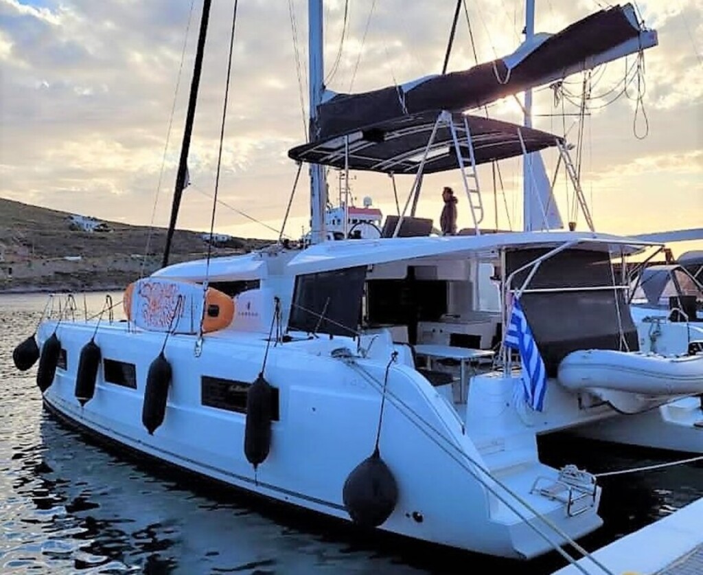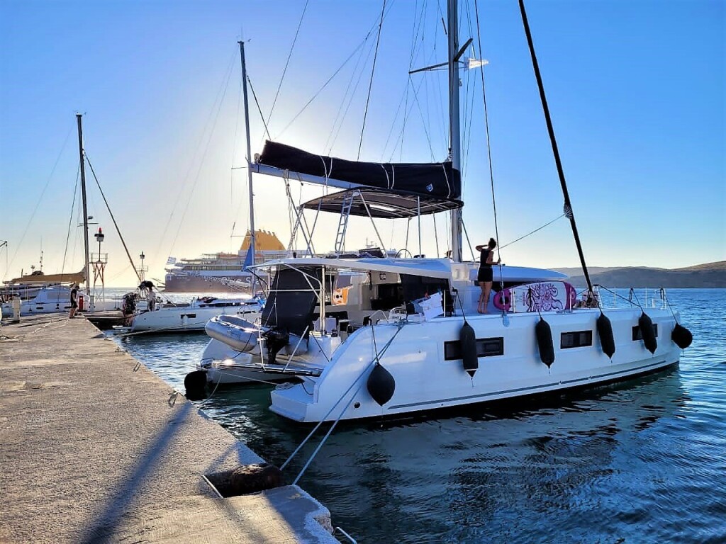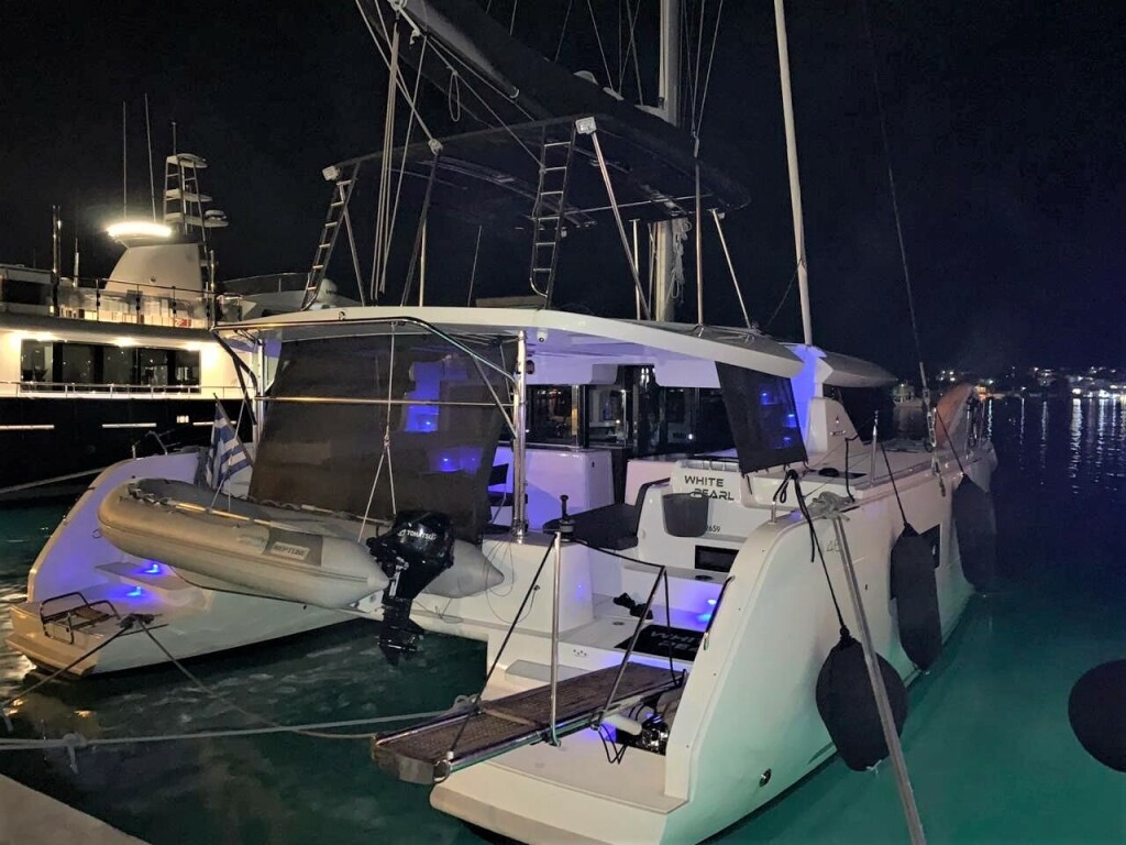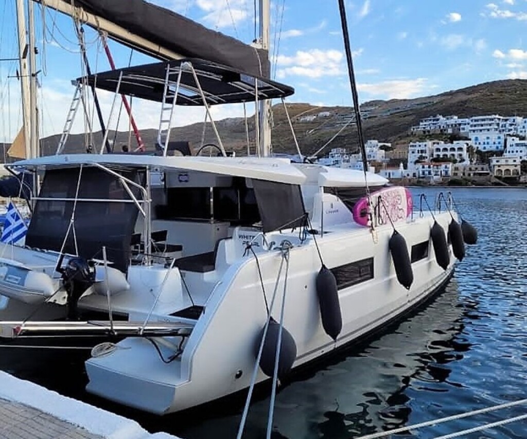 Catamaran Lagoon 46 White Pearl, built in 2020 is anchored in the Athens, Alimos marina, Greece - Peloponnese, Greece. It has 4 + 2 cabins, can accommodate 9 + 1 people and has 4 + 1 toilets. Bed linen and kitchen equipment are included in the price.