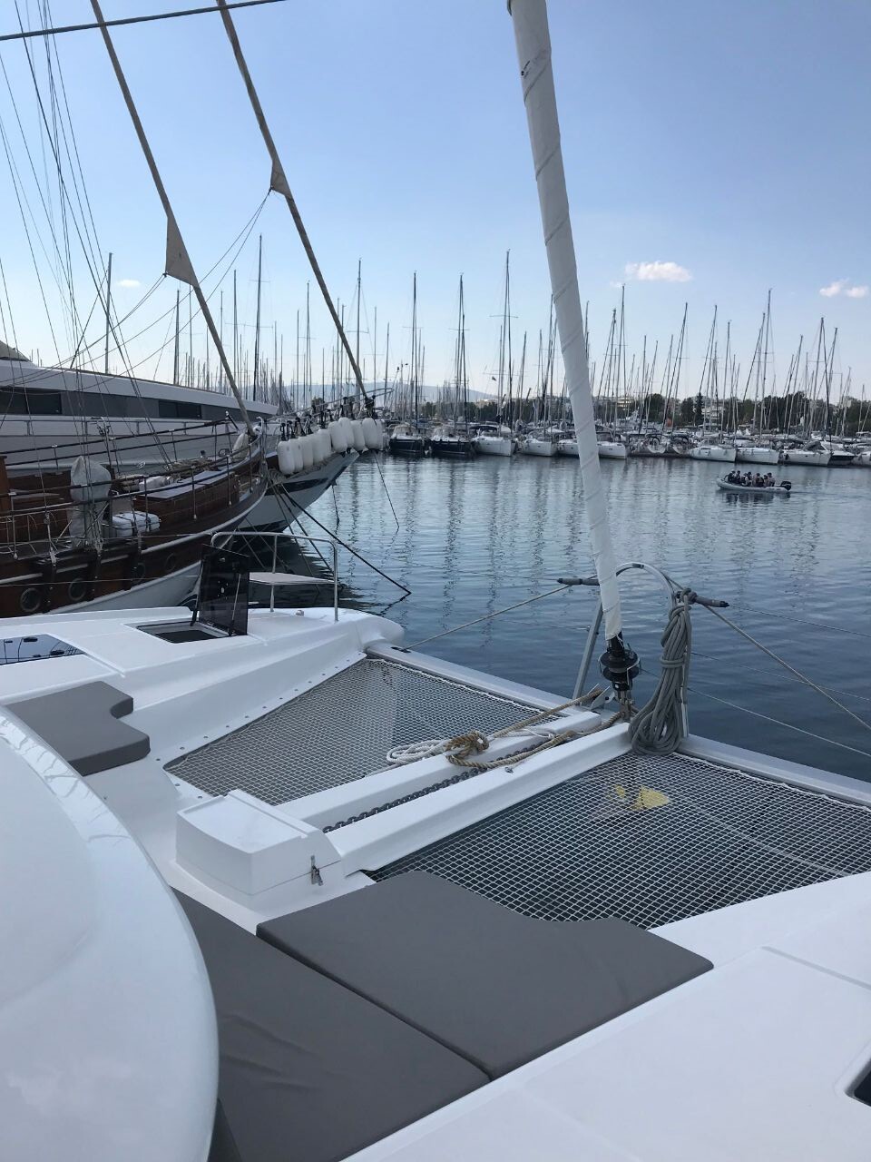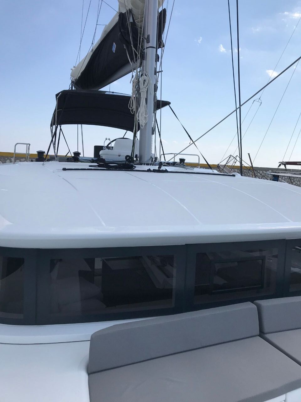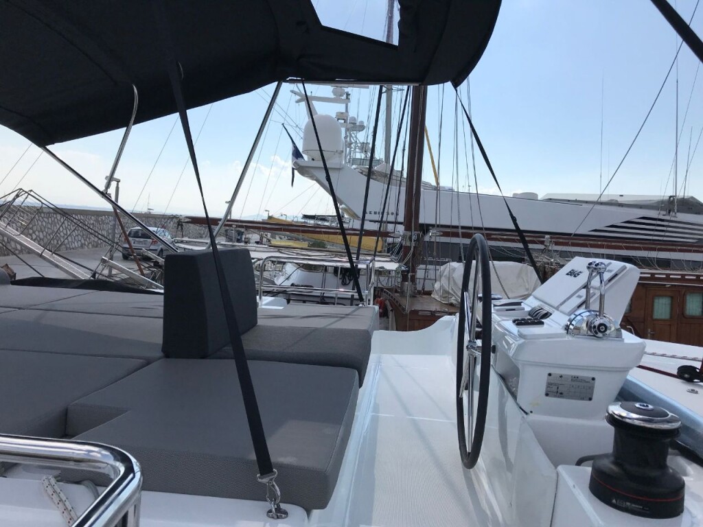 Catamaran Lagoon 50 Aeolian Myth, built in 2019 is anchored in the Preveza Marina, Greece - Ionian Islands, Greece. It has 6 + 2 cabins, can accommodate 10 + 2 people and has 6 + 2 toilets. Bed linen and kitchen equipment are included in the price.