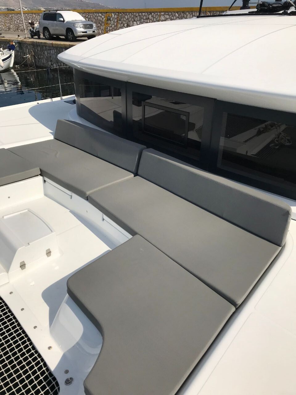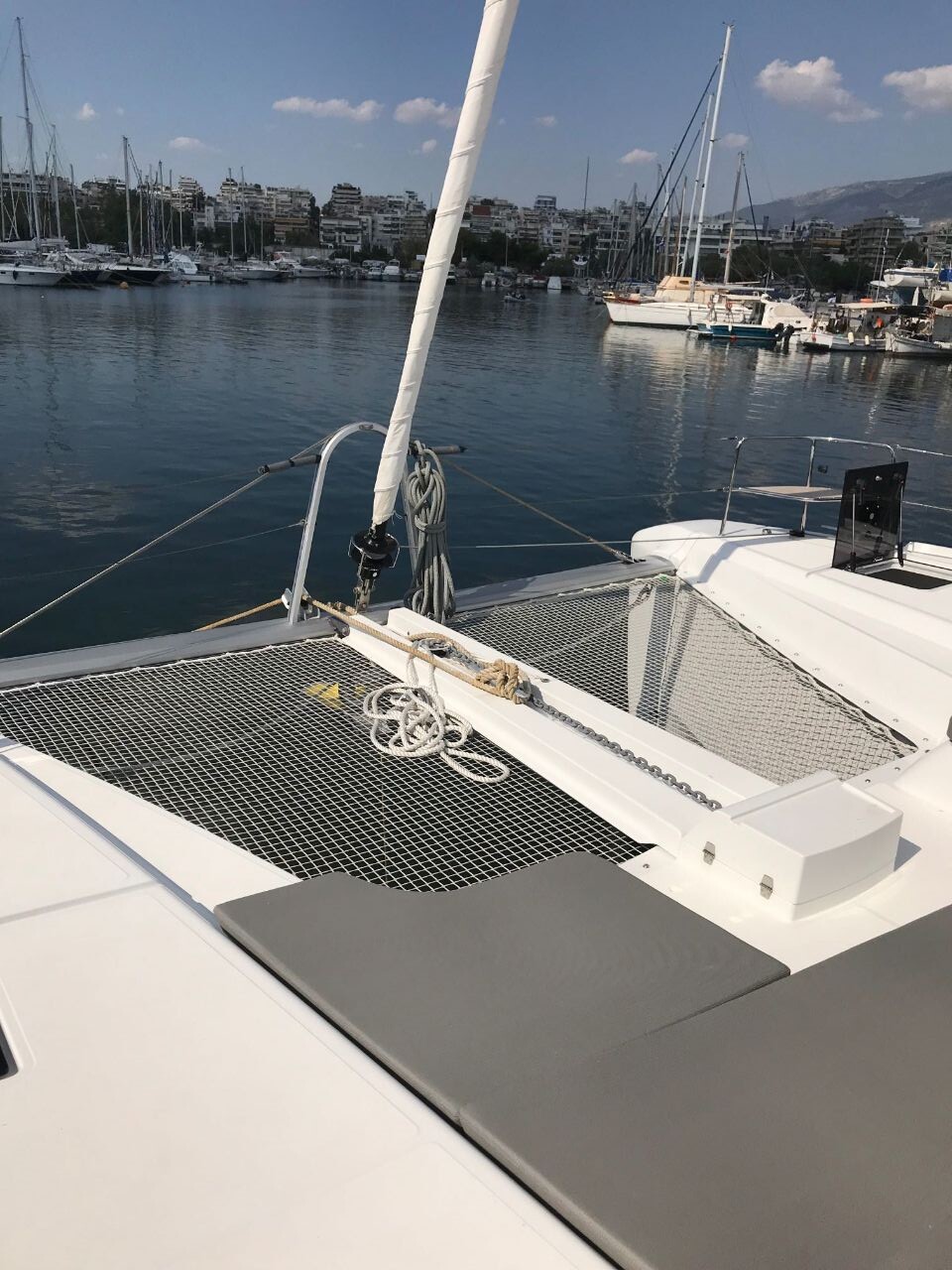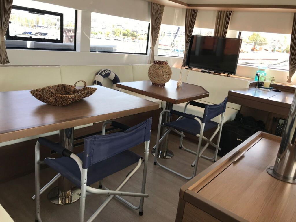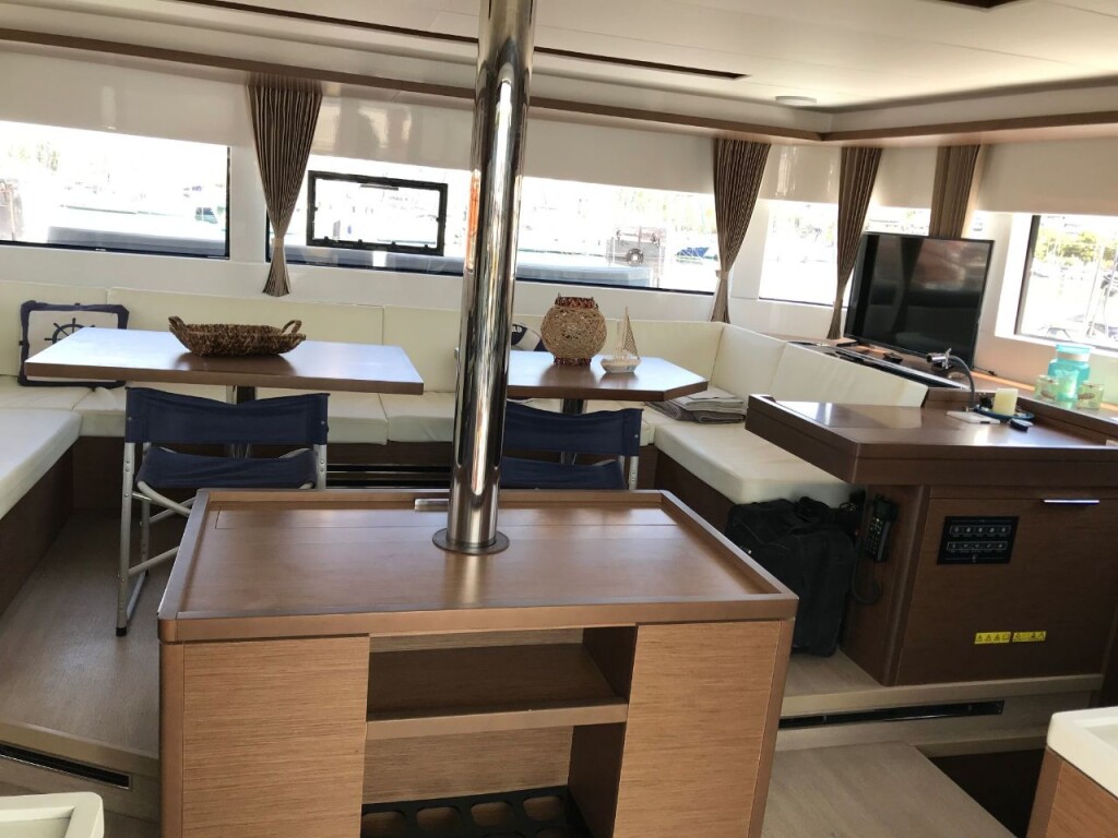 Catamaran Lagoon 50 Aeolian Myth, built in 2019 is anchored in the Preveza Marina, Greece - Ionian Islands, Greece. It has 6 + 2 cabins, can accommodate 10 + 2 people and has 6 + 2 toilets. Bed linen and kitchen equipment are included in the price.