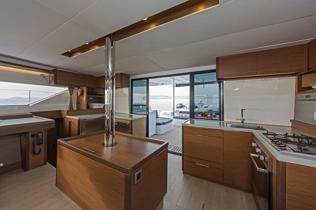 Catamaran Lagoon 50 Andromeda, built in 2019 is anchored in the Lefkas, D-Marin, Greece - Ionian Islands, Greece. It has 6 + 2 cabins, can accommodate 12 + 1 people and has 4 + 1 toilets. Bed linen and kitchen equipment are included in the price.