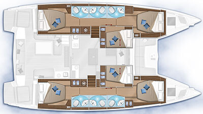 Catamaran Lagoon 50 ECONOMY, built in 2019 is anchored in the Athens, Alimos marina, Greece - Peloponnese, Greece. It has 6 cabins, can accommodate 12 people and has 6 toilets. Bed linen and kitchen equipment are included in the price.