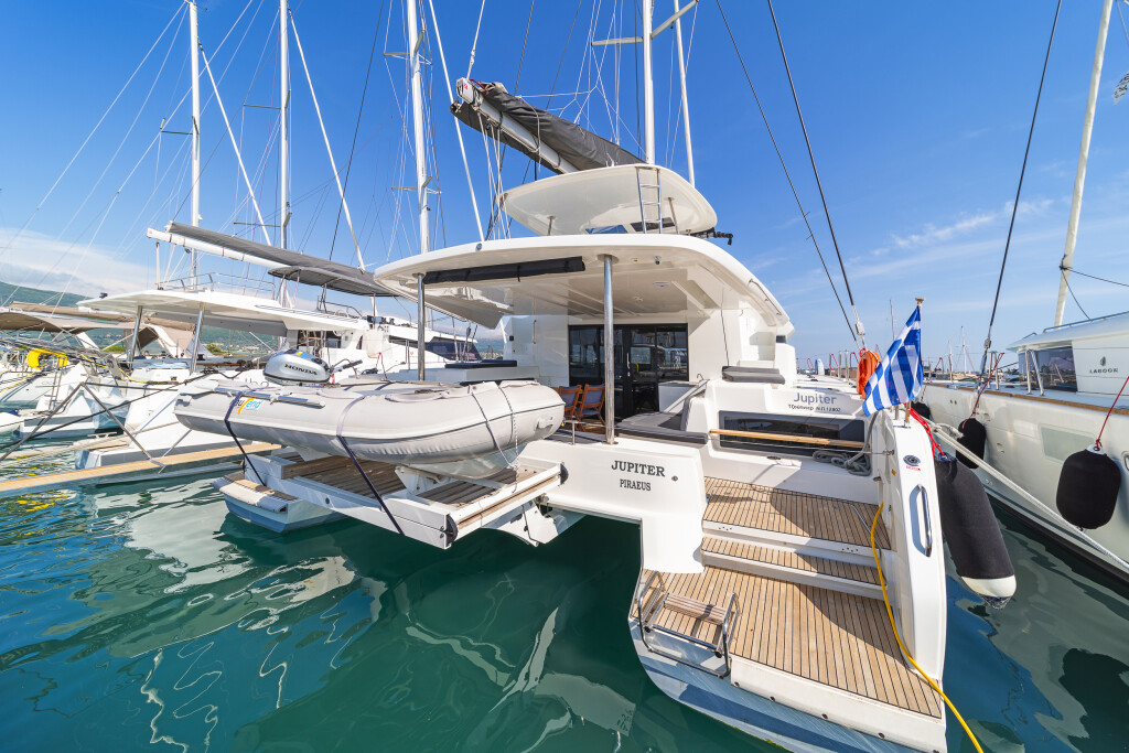 Catamaran Lagoon 50 Jupiter, built in 2021 is anchored in the Lefkas, D-Marin, Greece - Ionian Islands, Greece. It has 6 + 1 cabins, can accommodate 12 + 1 people and has 4 + 1 toilets. Bed linen and kitchen equipment are included in the price.
