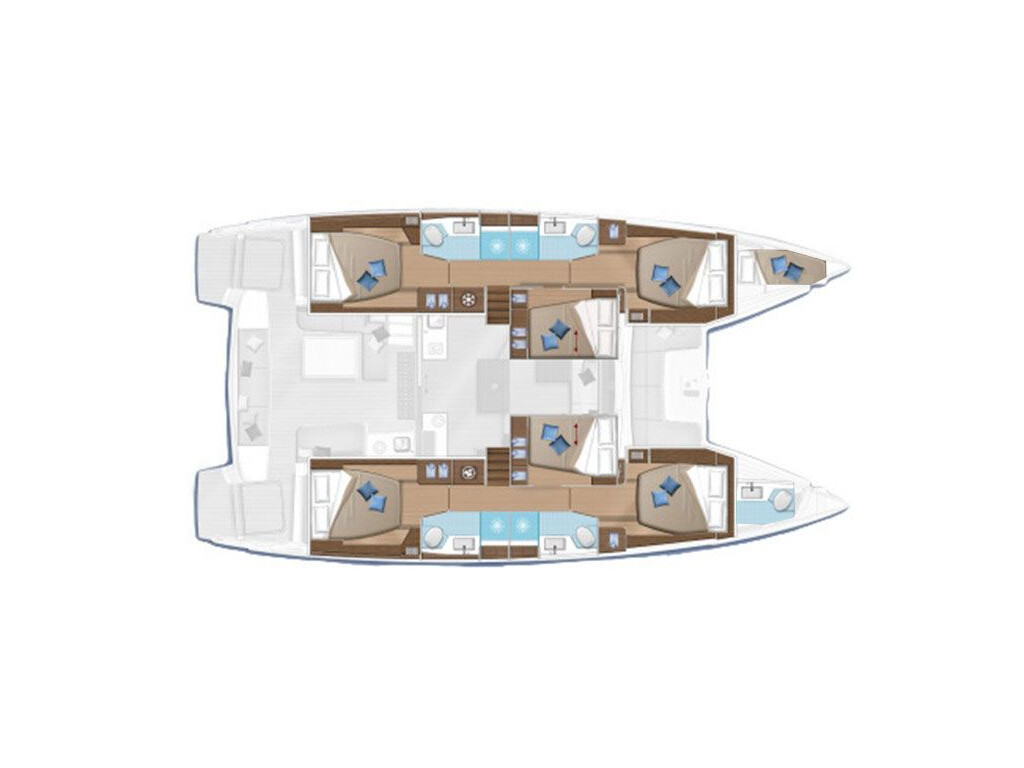 Catamaran Lagoon 50 Katka, built in 2019 is anchored in the Marina Kastela, Croatia - Split, Croatia. It has 6 + 1 cabins, can accommodate 12 + 1 people and has 4 + 1 toilets. Bed linen and kitchen equipment are included in the price.