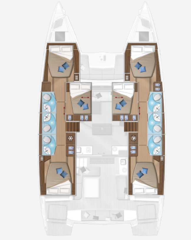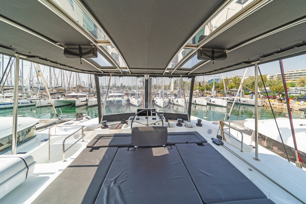 Catamaran Lagoon 50 Reina, built in 2022 is anchored in the Athens, Alimos marina, Greece - Peloponnese, Greece. It has 6 cabins, can accommodate 12 people and has 4 toilets. Bed linen and kitchen equipment are included in the price.