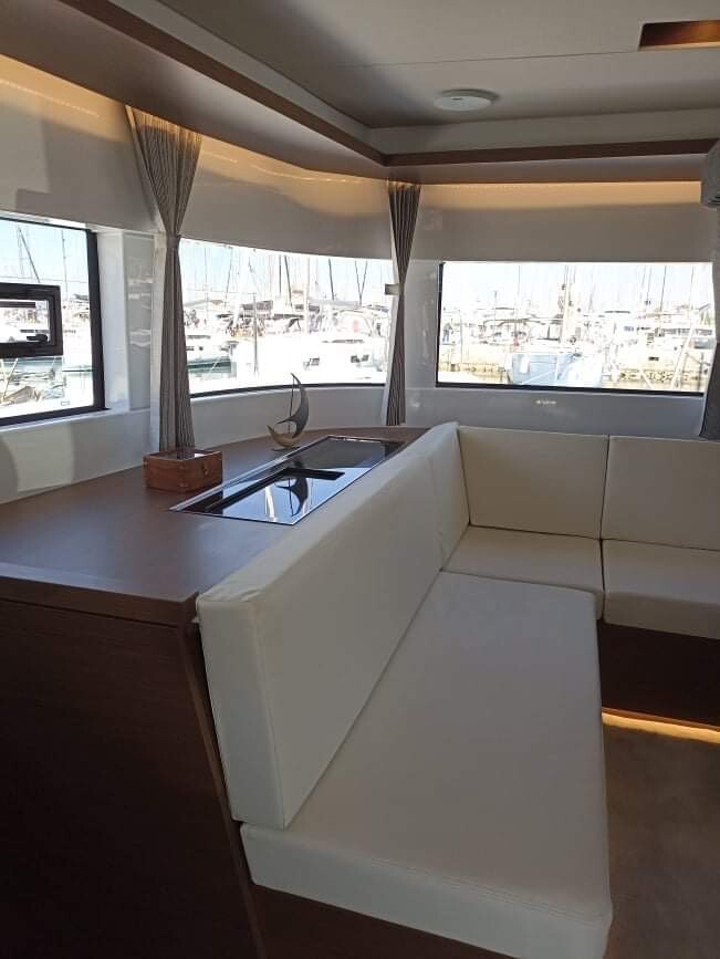 Catamaran Lagoon 50 Silhouette, built in 2022 is anchored in the Athens, Alimos marina, Greece - Peloponnese, Greece. It has 6 + 2 cabins, can accommodate 12 people and has 4 + 2 toilets. Bed linen and kitchen equipment are included in the price.