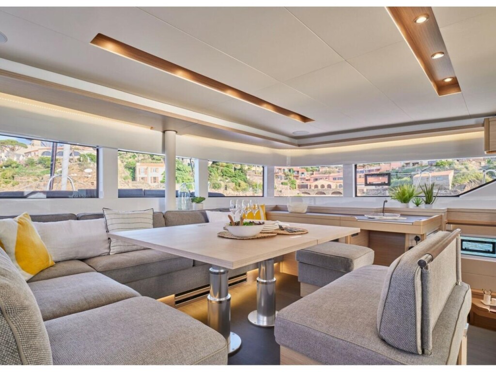Catamaran Lagoon 51 Athena Blu, built in 2025 is anchored in the Athens, Alimos marina, Greece - Peloponnese, Greece. It has 6 cabins, can accommodate 10 people and has 4 toilets. Bed linen and kitchen equipment are included in the price.