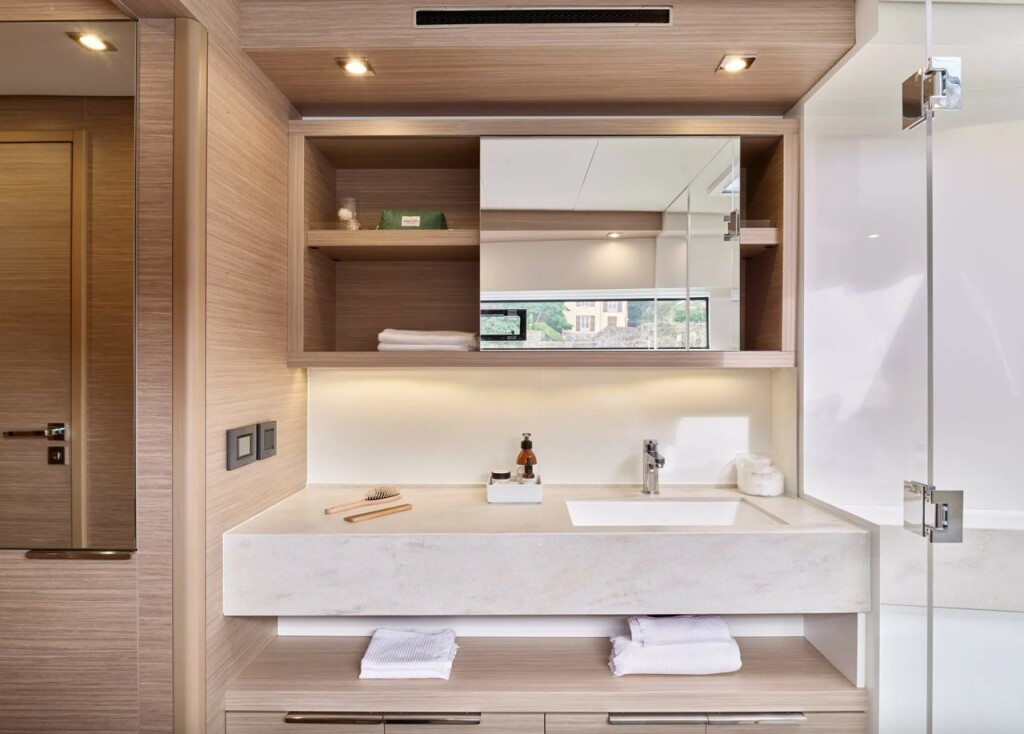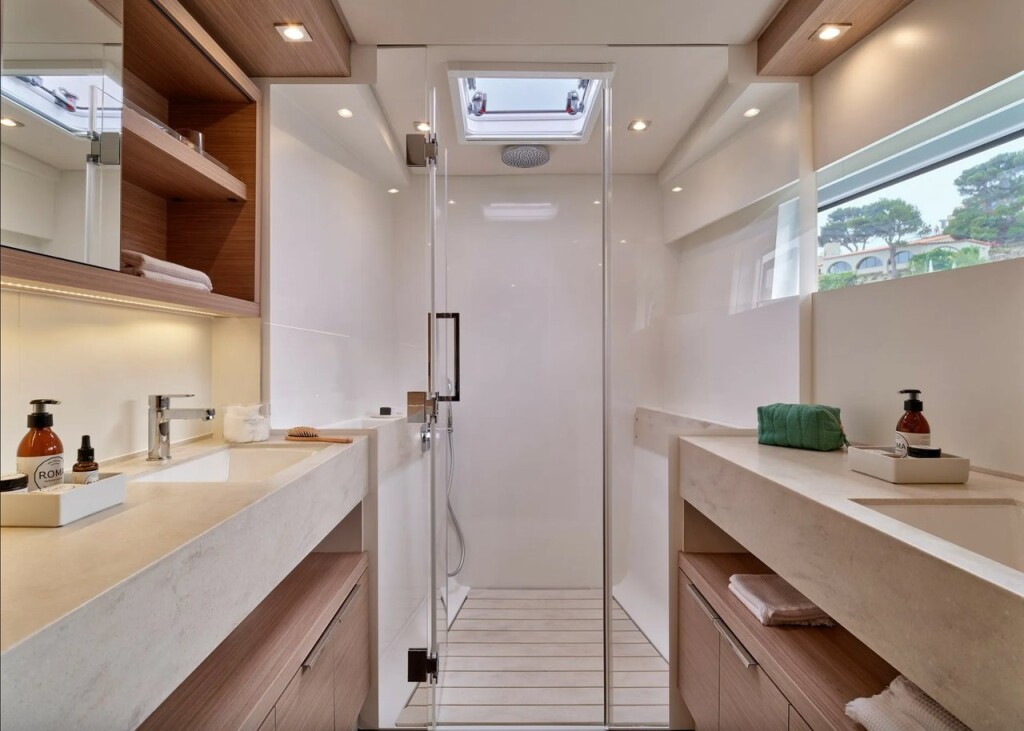 Catamaran Lagoon 51 OW Unconditional Love, built in 2024 is anchored in the Pula, Marina Polesana, Croatia - Istria, Croatia. It has 4 cabins, can accommodate 8 + 1 people and has 3 toilets. Bed linen and kitchen equipment are included in the price.