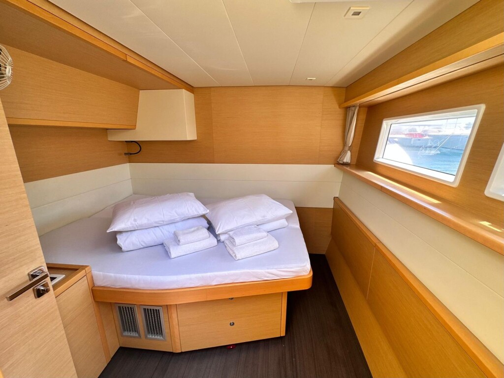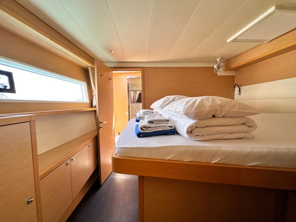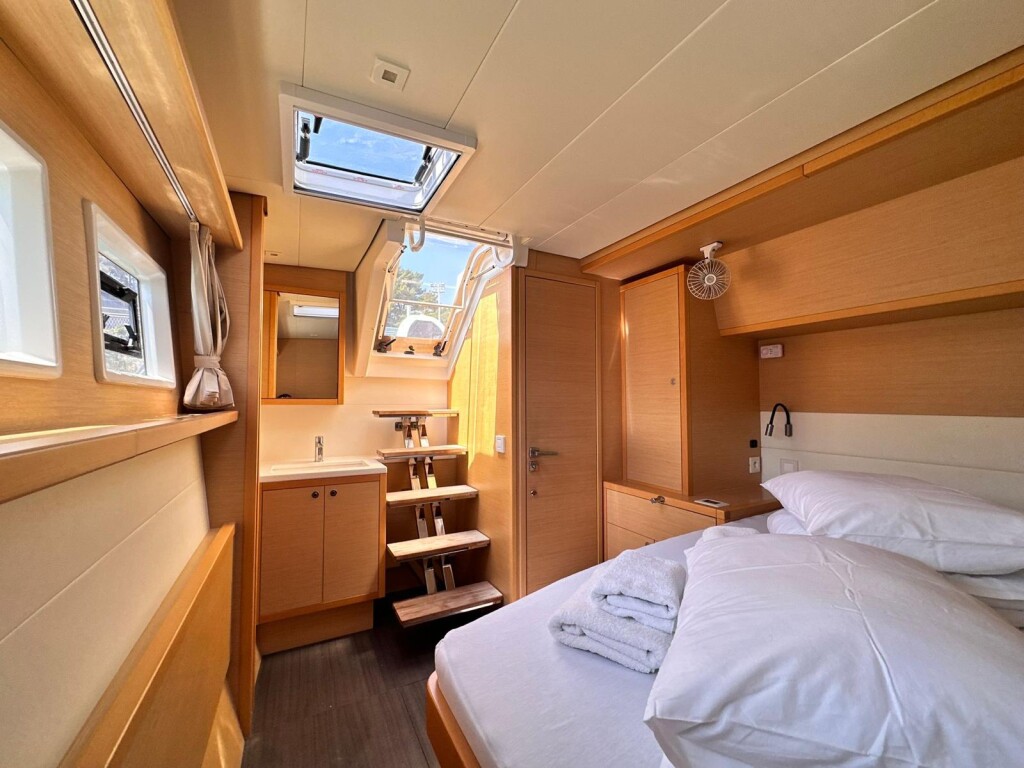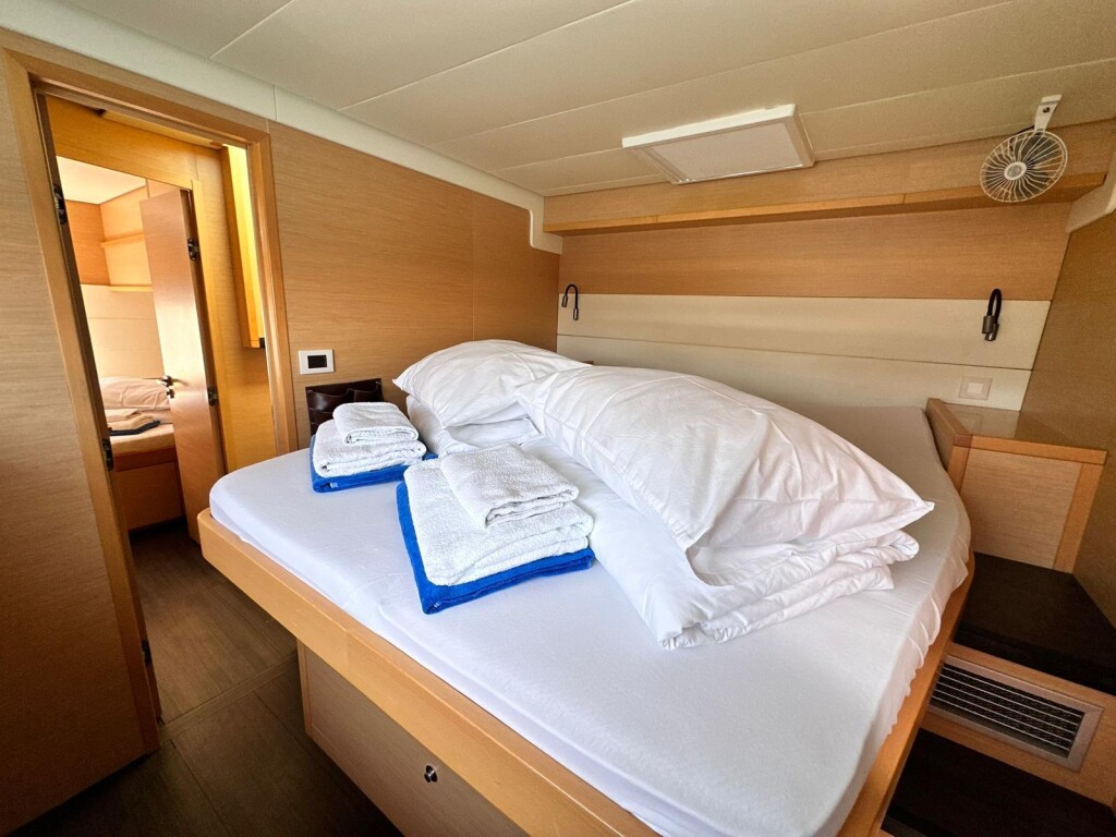 Catamaran Lagoon 52 F Madonna of Adriatic, built in 2017 is anchored in the ACI Marina Split, Croatia - Split, Croatia. It has 6 + 2 cabins, can accommodate 12 + 2 people and has 6 toilets. Bed linen and kitchen equipment are included in the price.