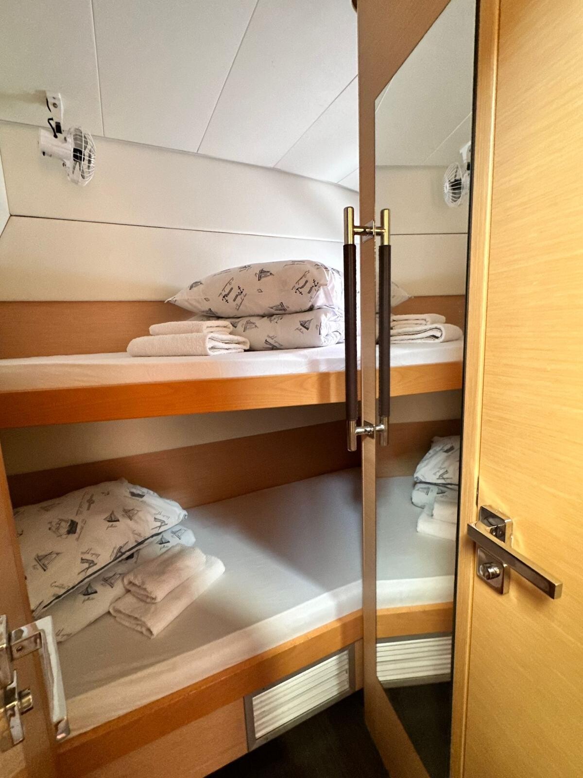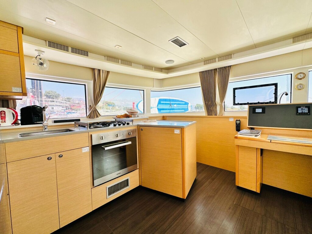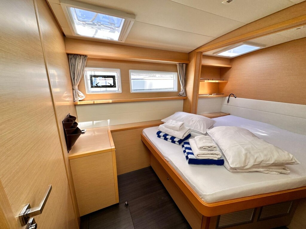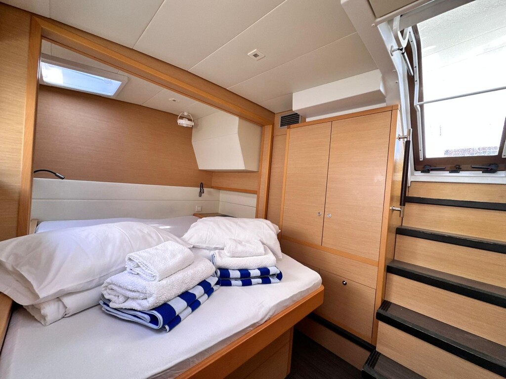 Catamaran Lagoon 52 F Madonna of Adriatic, built in 2017 is anchored in the ACI Marina Split, Croatia - Split, Croatia. It has 6 + 2 cabins, can accommodate 12 + 2 people and has 6 toilets. Bed linen and kitchen equipment are included in the price.