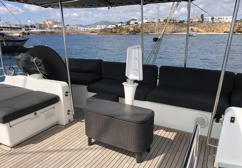 Catamaran Lagoon 620 ZS, built in 2015 is anchored in the Ibiza, Spain - Balearic Islands, Spain. It has 4 + 2 cabins, can accommodate 8 + 2 people and has 4 toilets. Bed linen and kitchen equipment are included in the price.